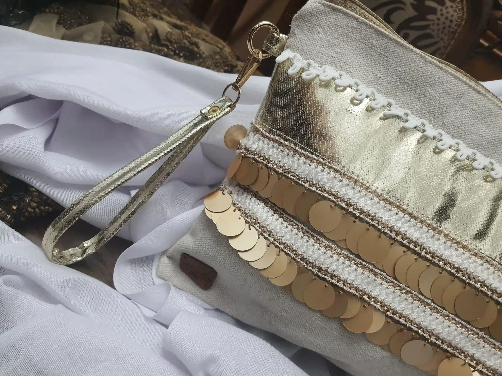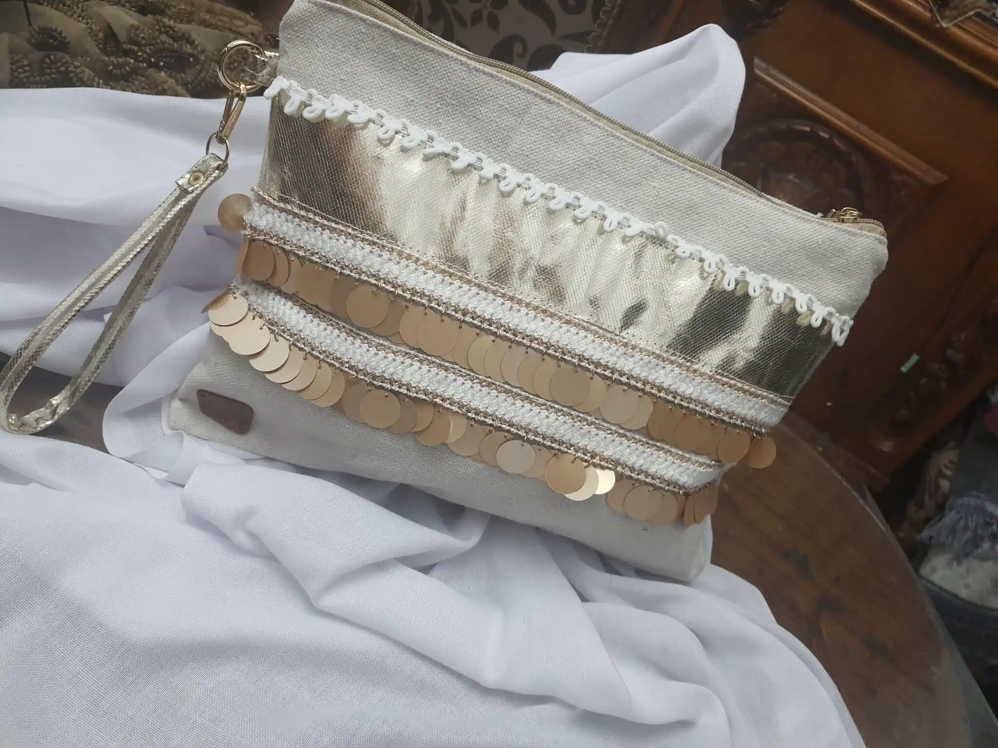 Beige fabric clutch 32cm x 22cm Padded with zip