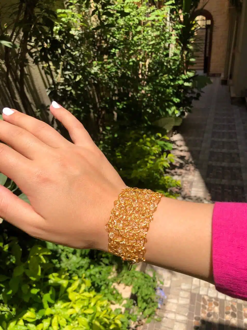 Handmade gold plated 18k bracelet with transparent stones