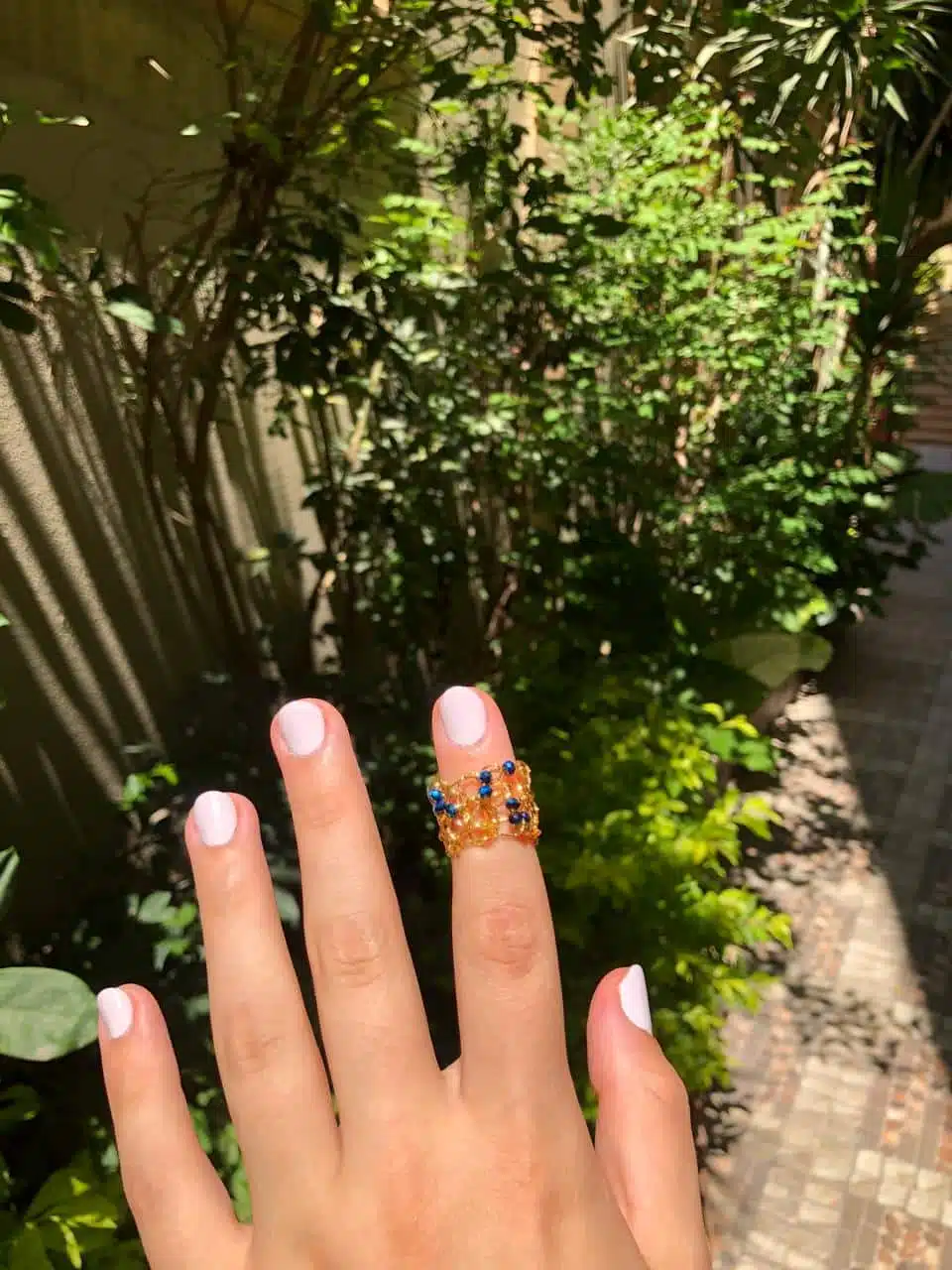 handmade gold plated 18k Ring with blue stones and circular appearance