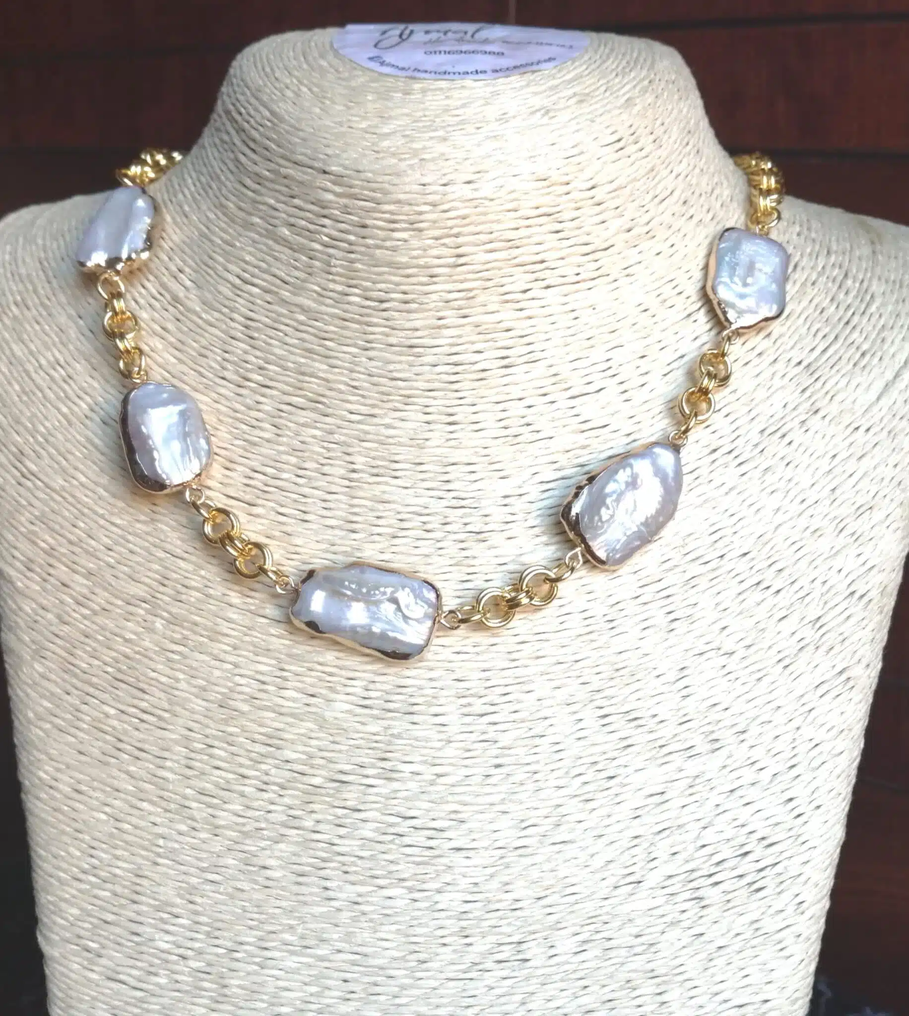 gold plated neckless with natural pearls