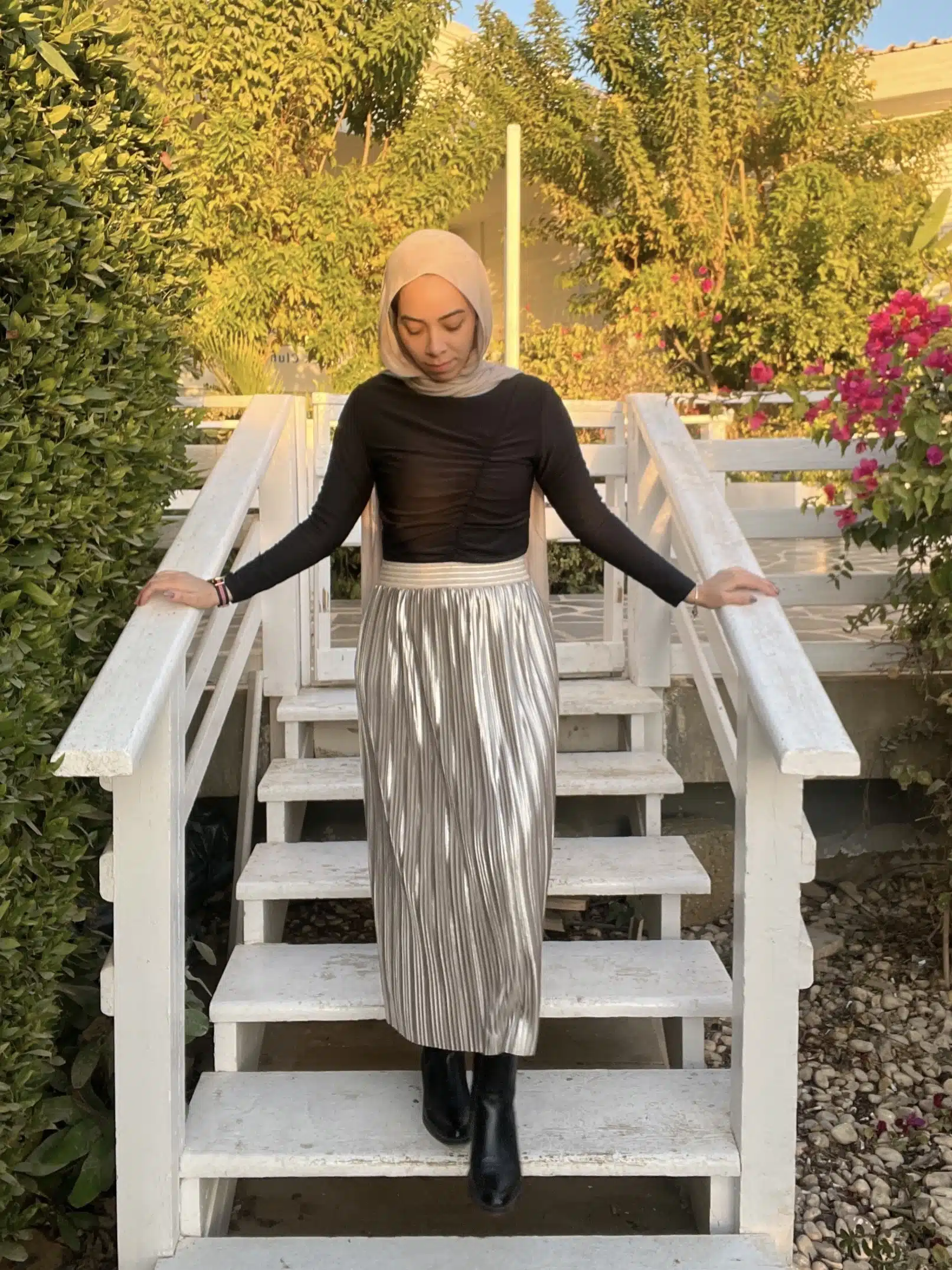 *gently wash the skirt in cold water with detergent, press out excess water, reshape the pleats and lay it flat to air dry.