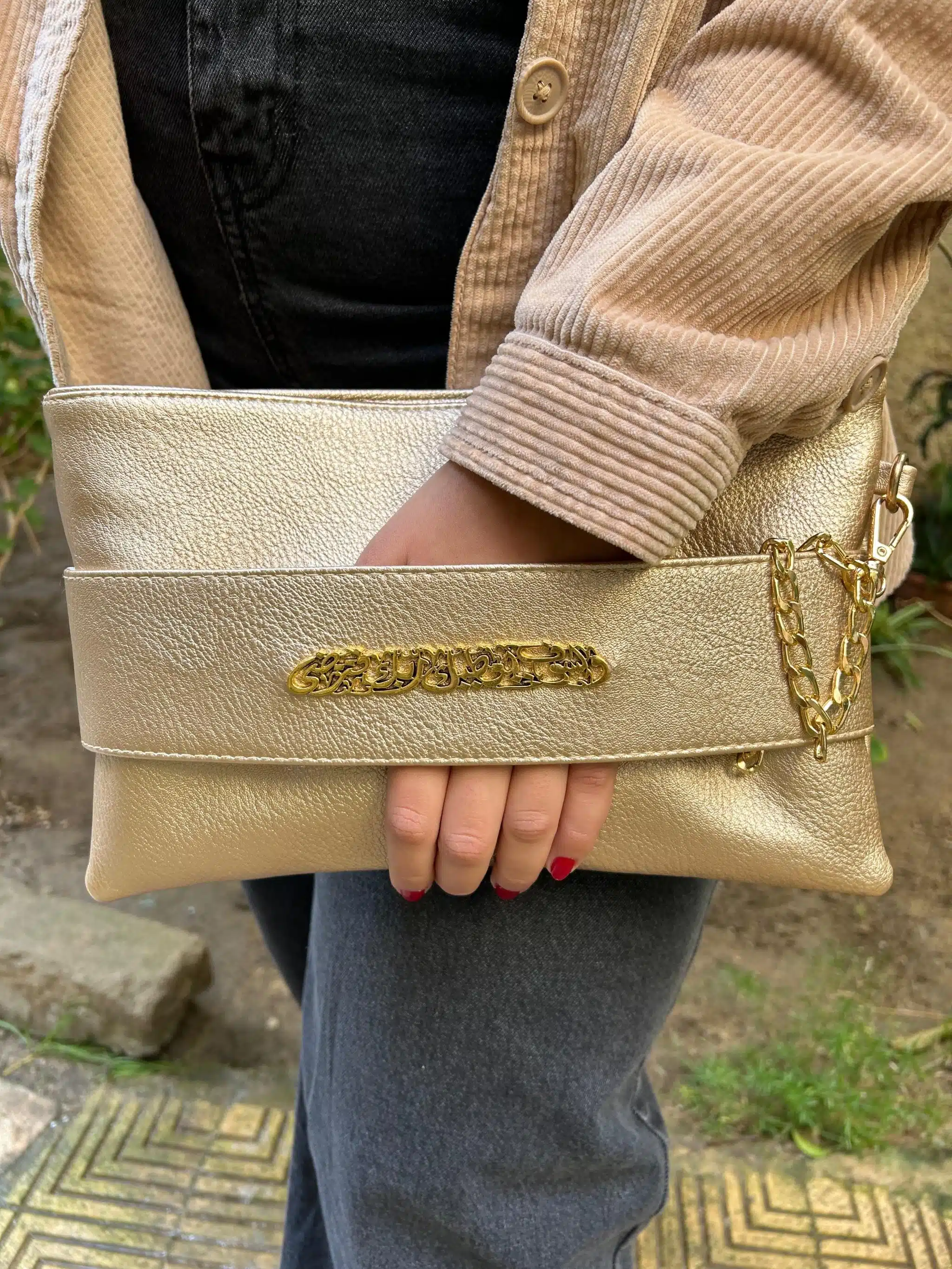 Gold clutch wrist chain