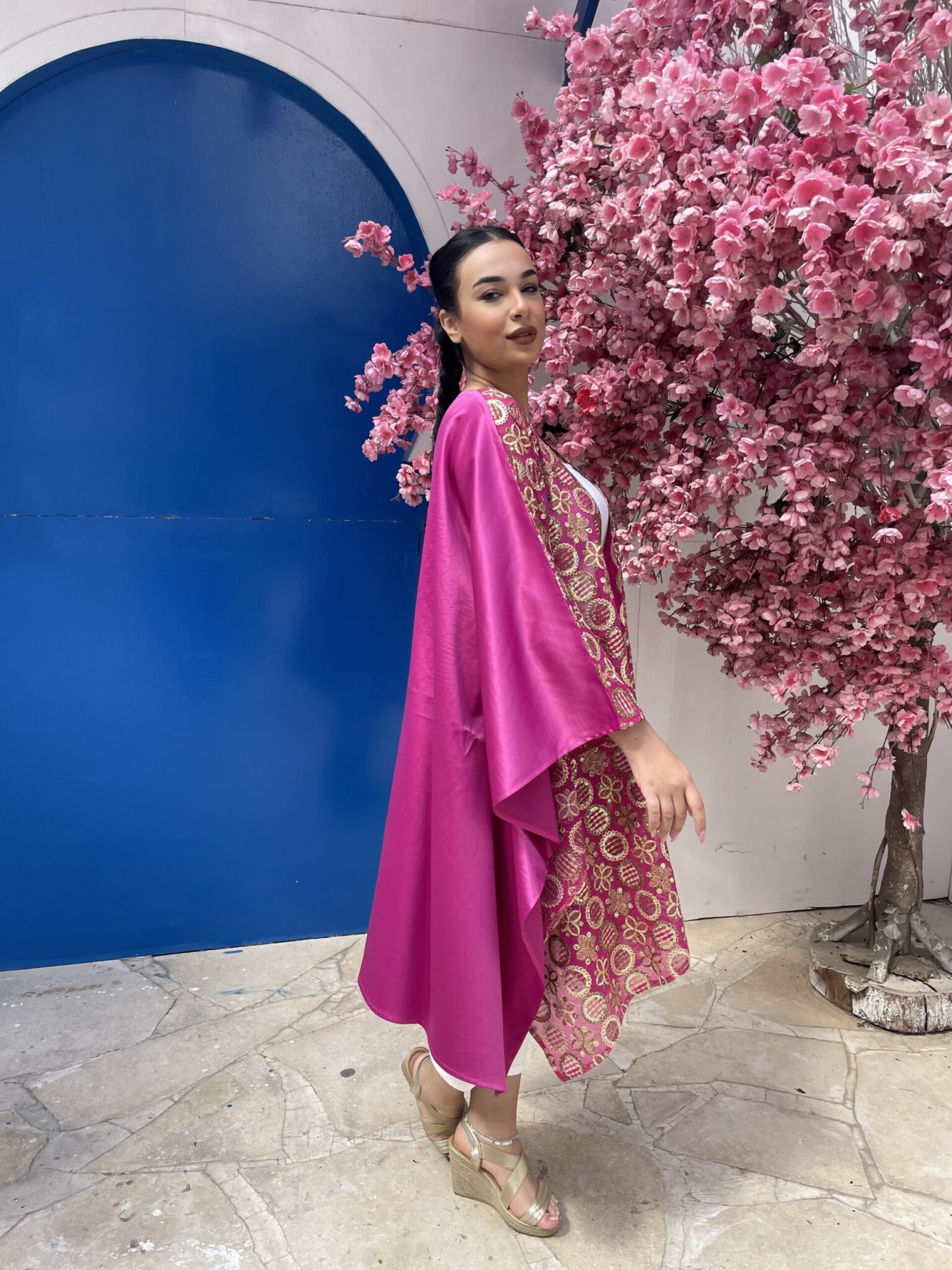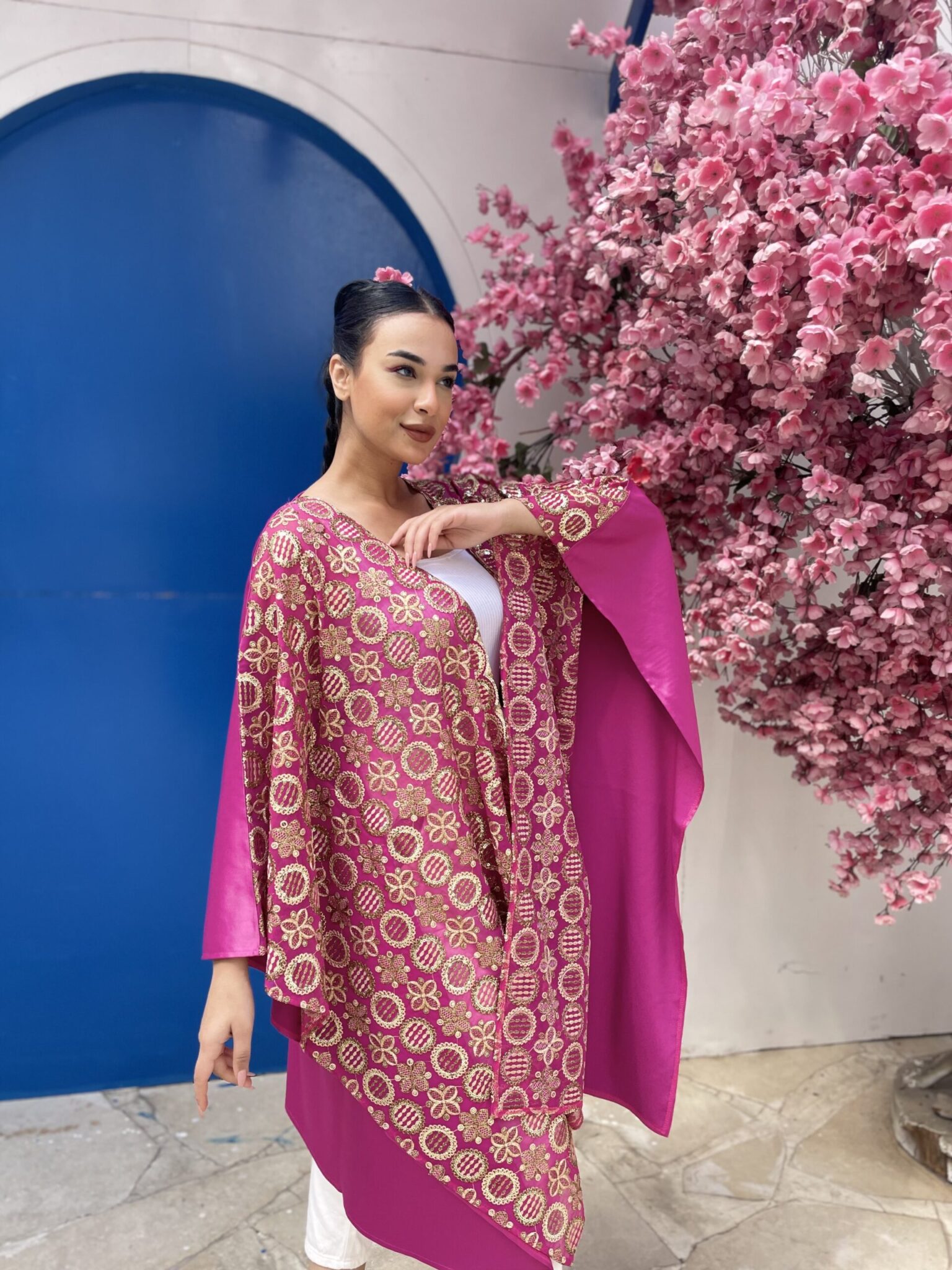 Golden embroidery pink kaftan