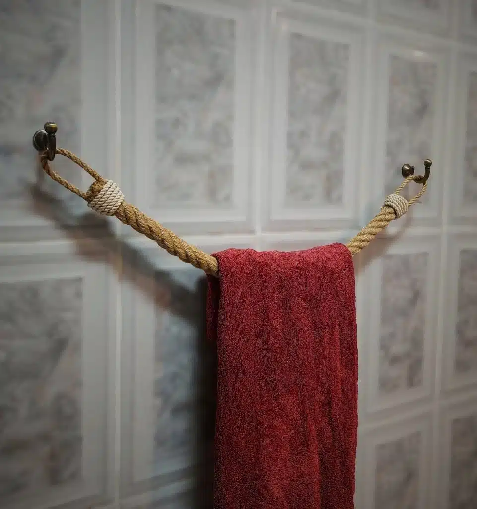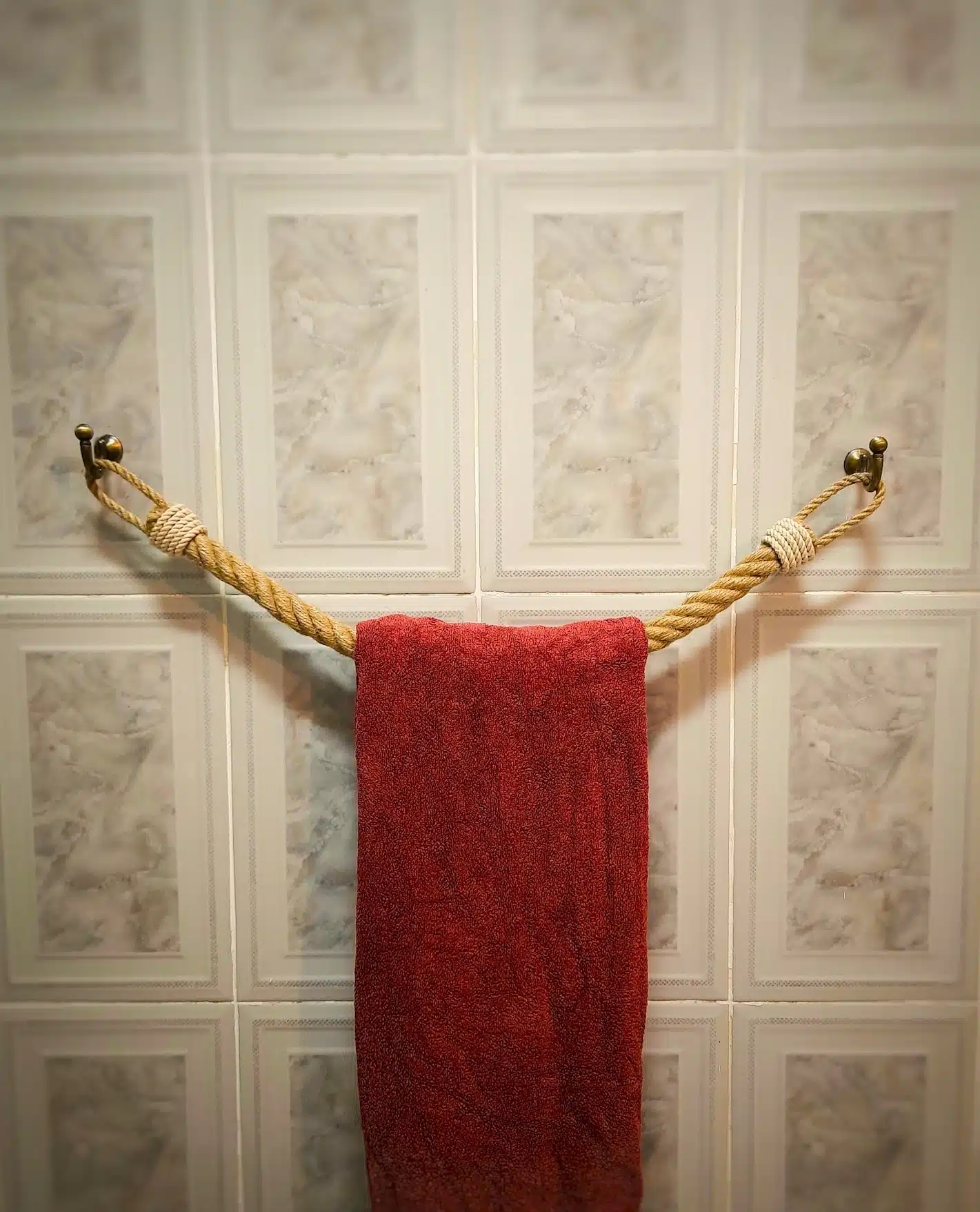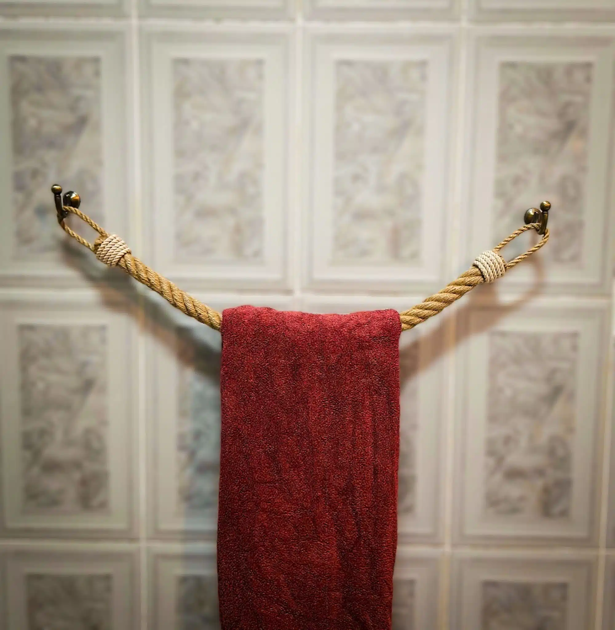 Beautiful, stylish towel holder in a marine style. Made of thick and sturdy natural Jute rope to suit bathroom and kitchen.