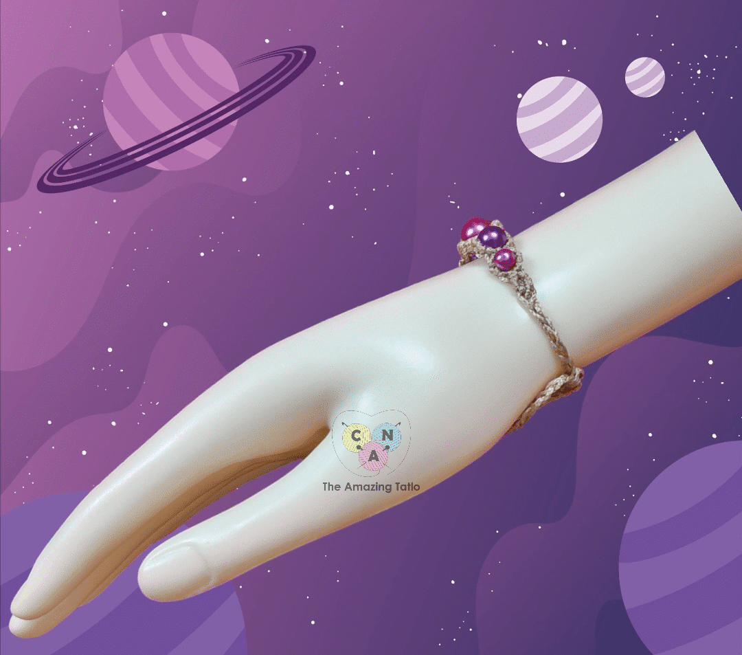 material: macramé thread – pearl beads