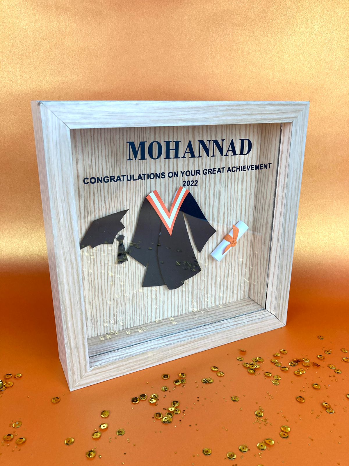 25x25cm Graduation shadowbox with customized colors & name