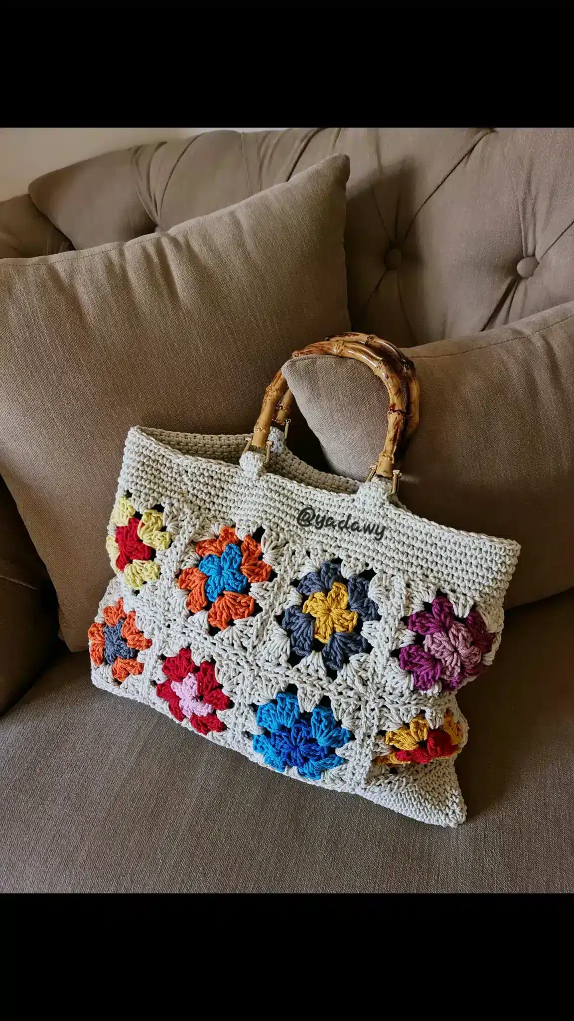 Granny tote bag with tusk handle