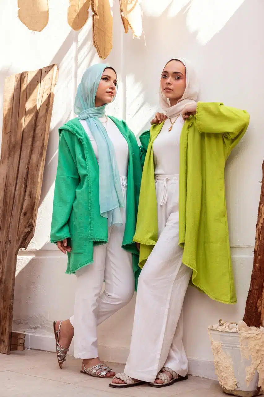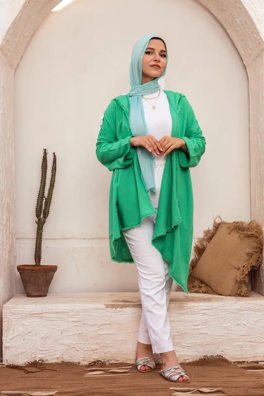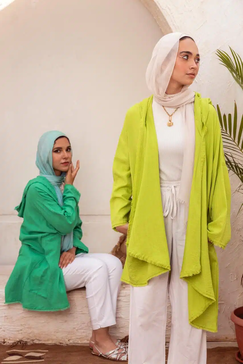 Soft linen cardigan,comes with 2 colors (green and Neon)