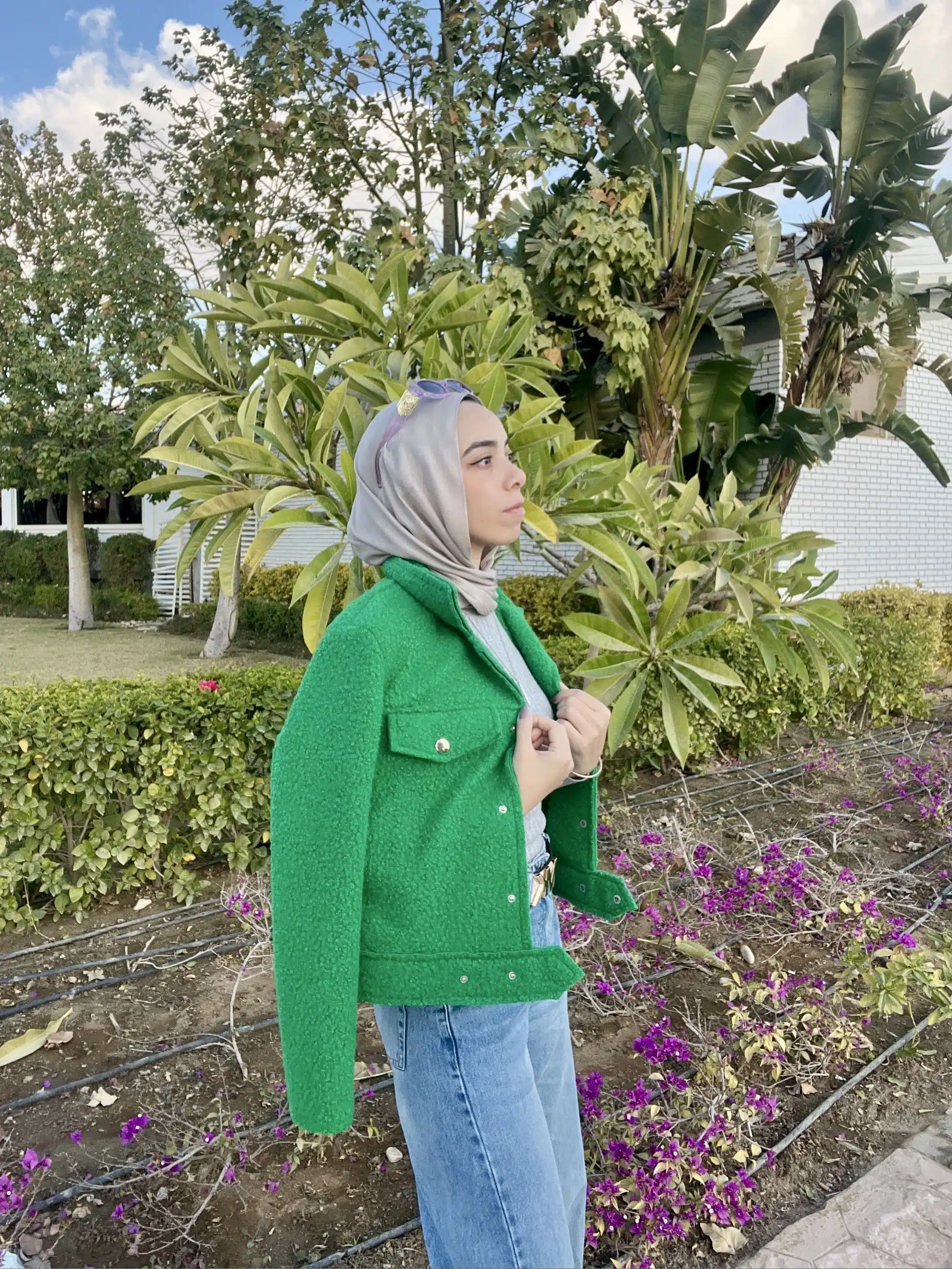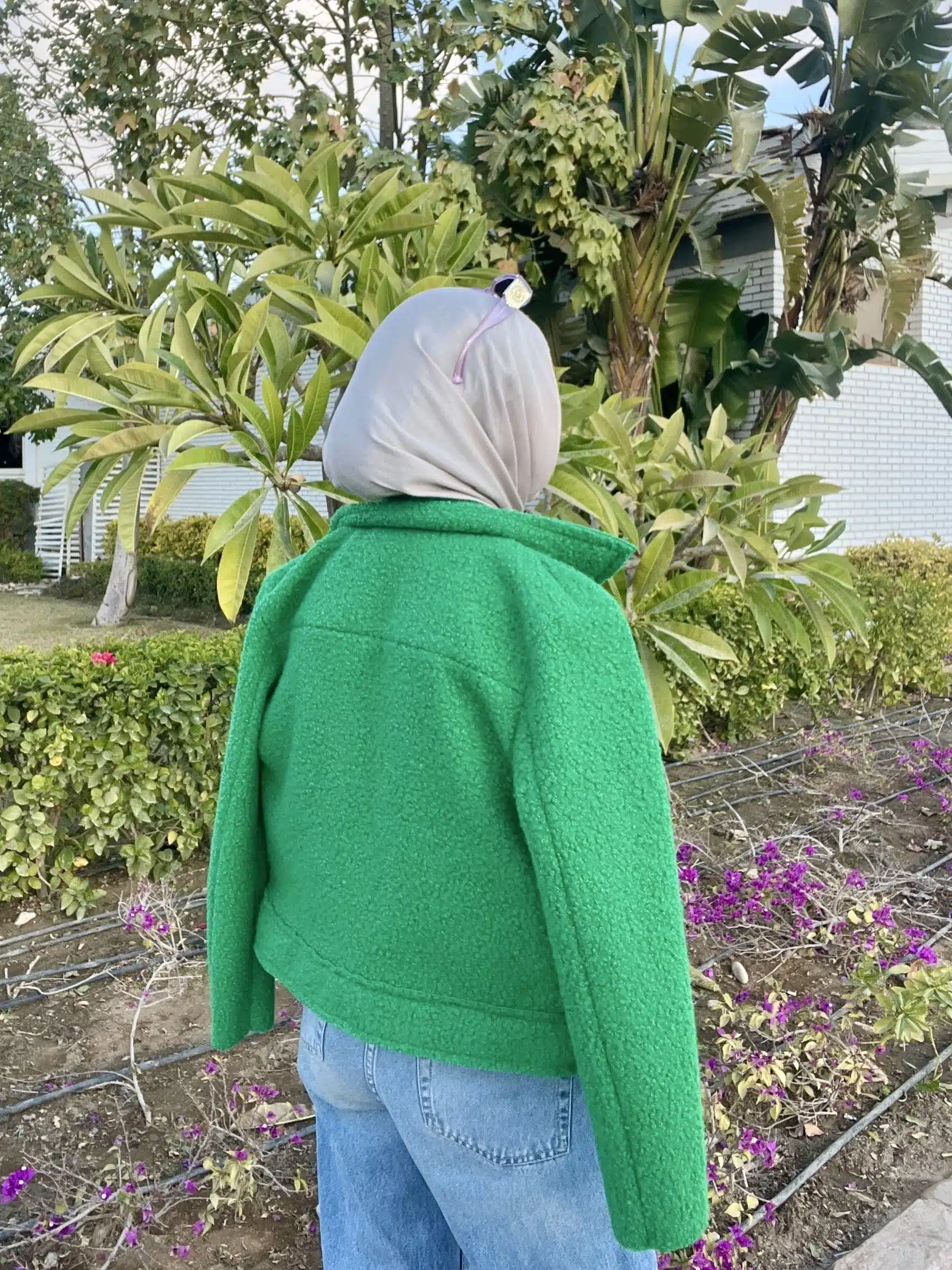 •Stay warm and stylish with the cushy wool cropped jacket.