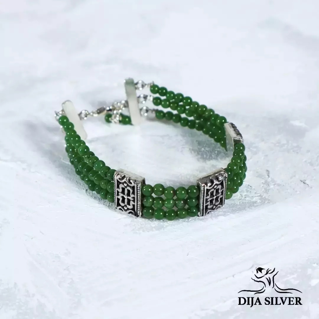 silver 925 bracelet with greenish jade stones