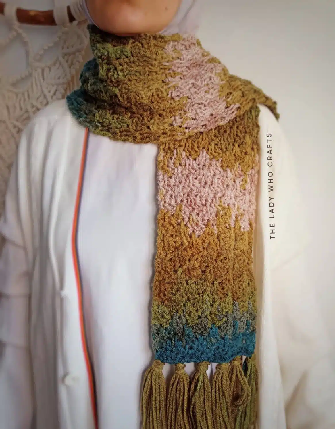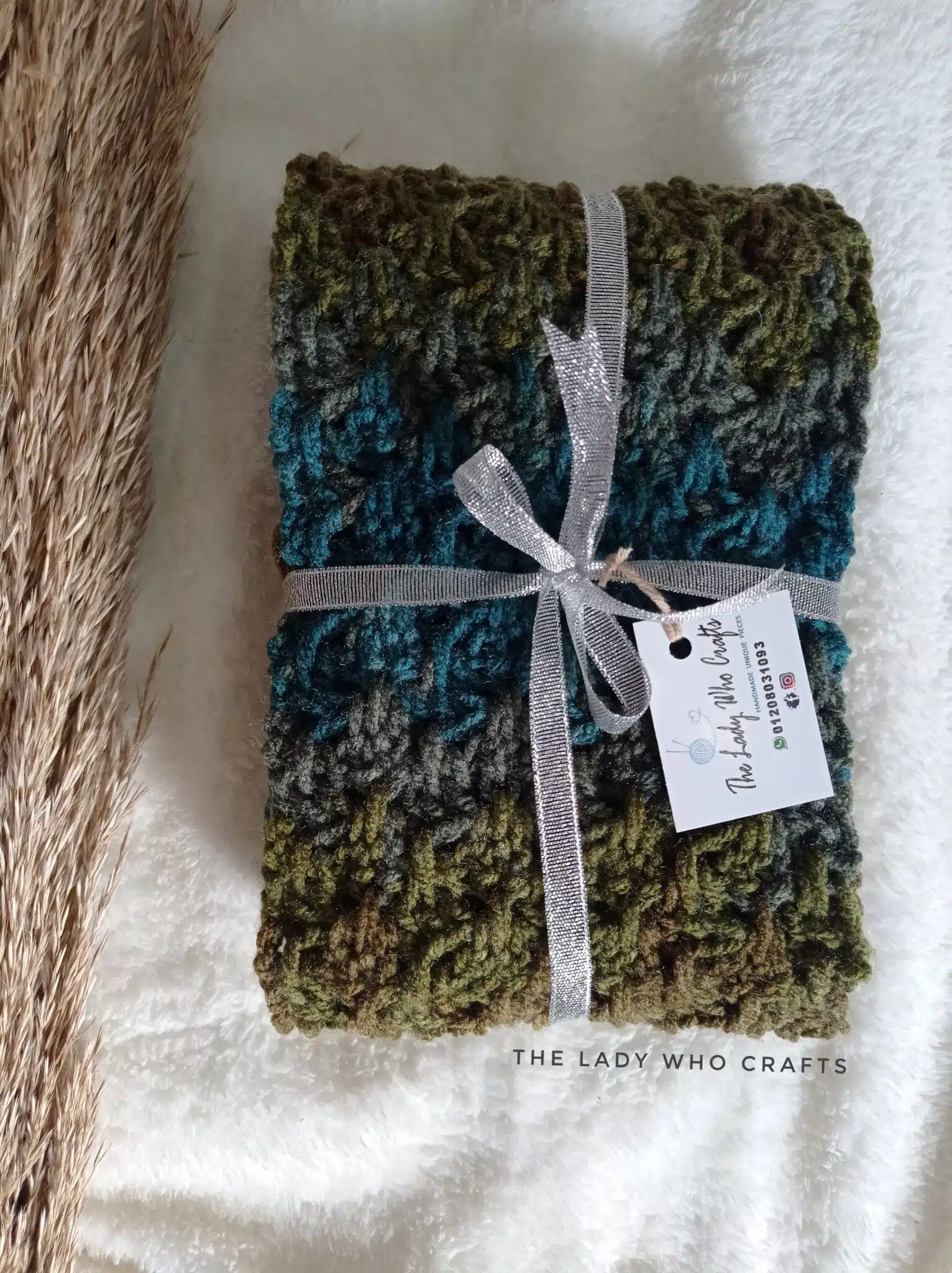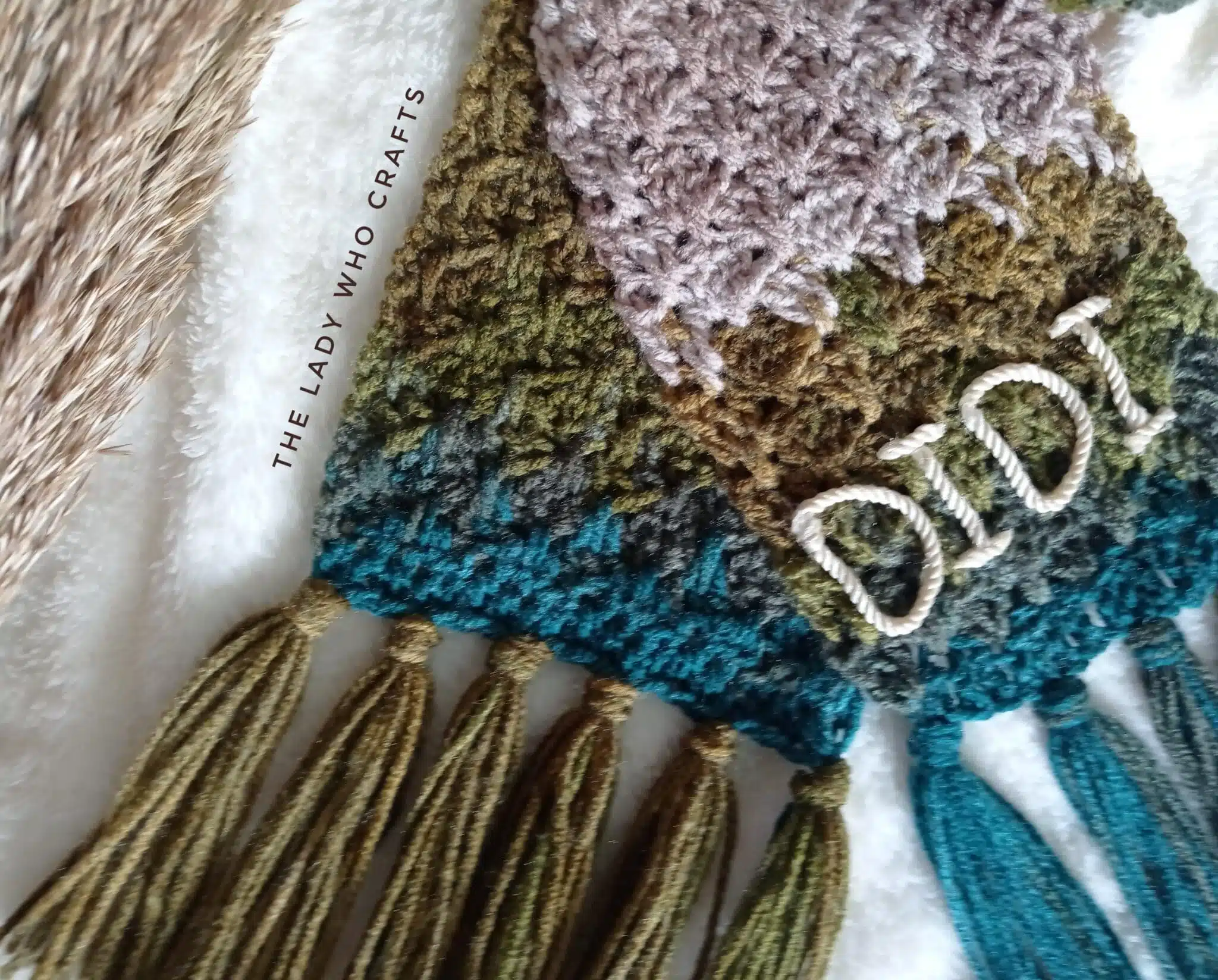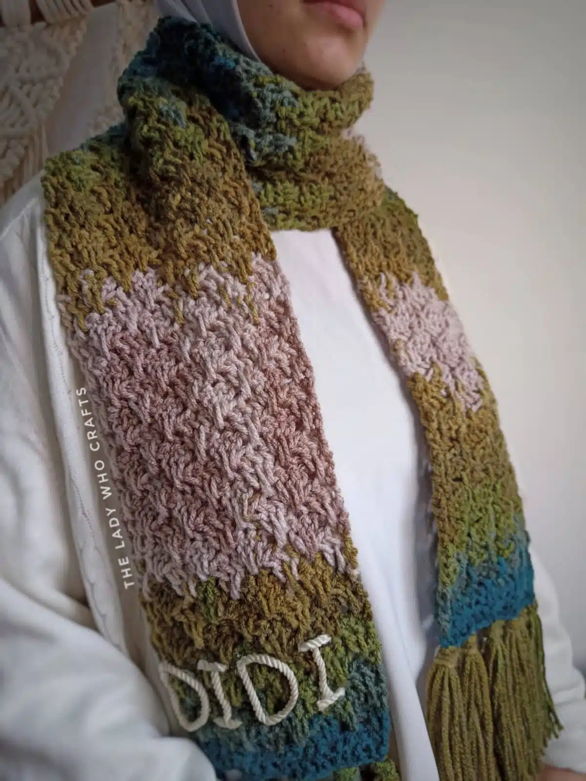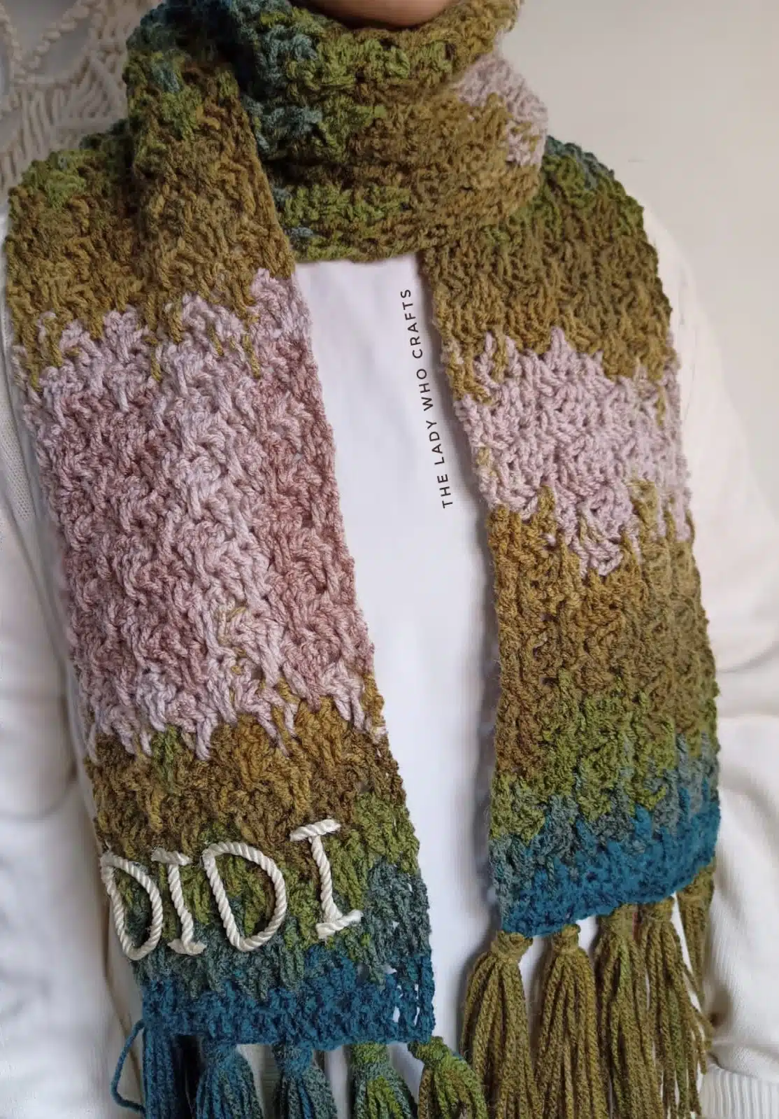 Unique crochet scarf with shades of green 💚 Customize your own scarf with embroidered name ❤️
