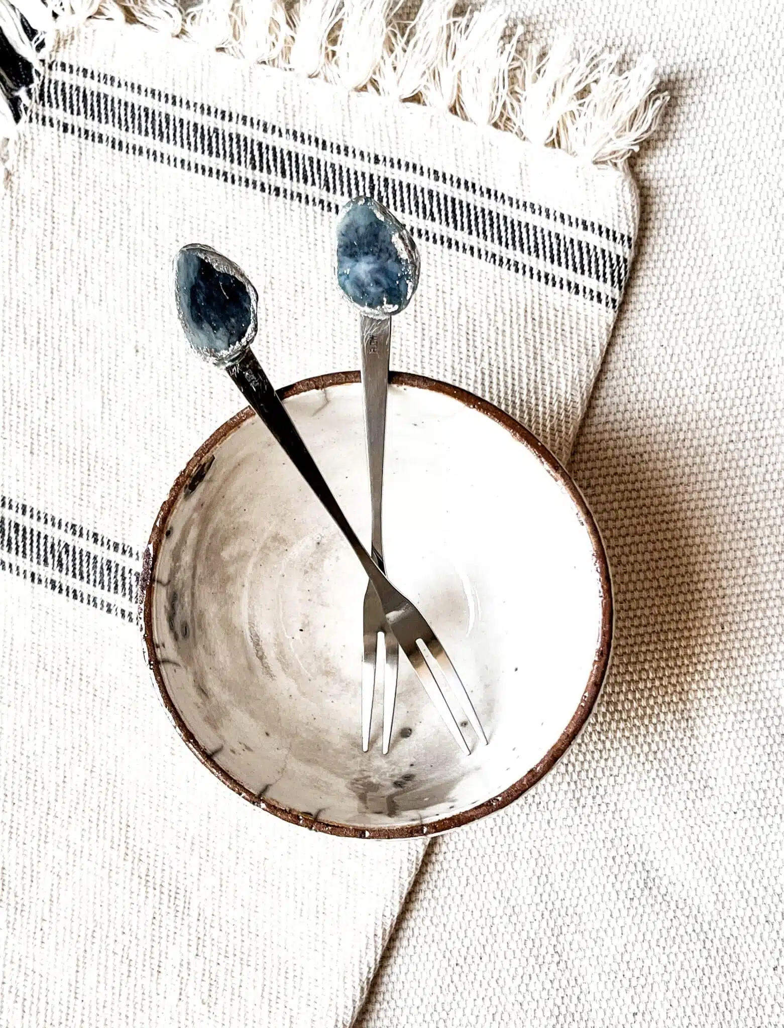 • Handmade handle ,, from epoxy resin & surrounded with silver leaves.