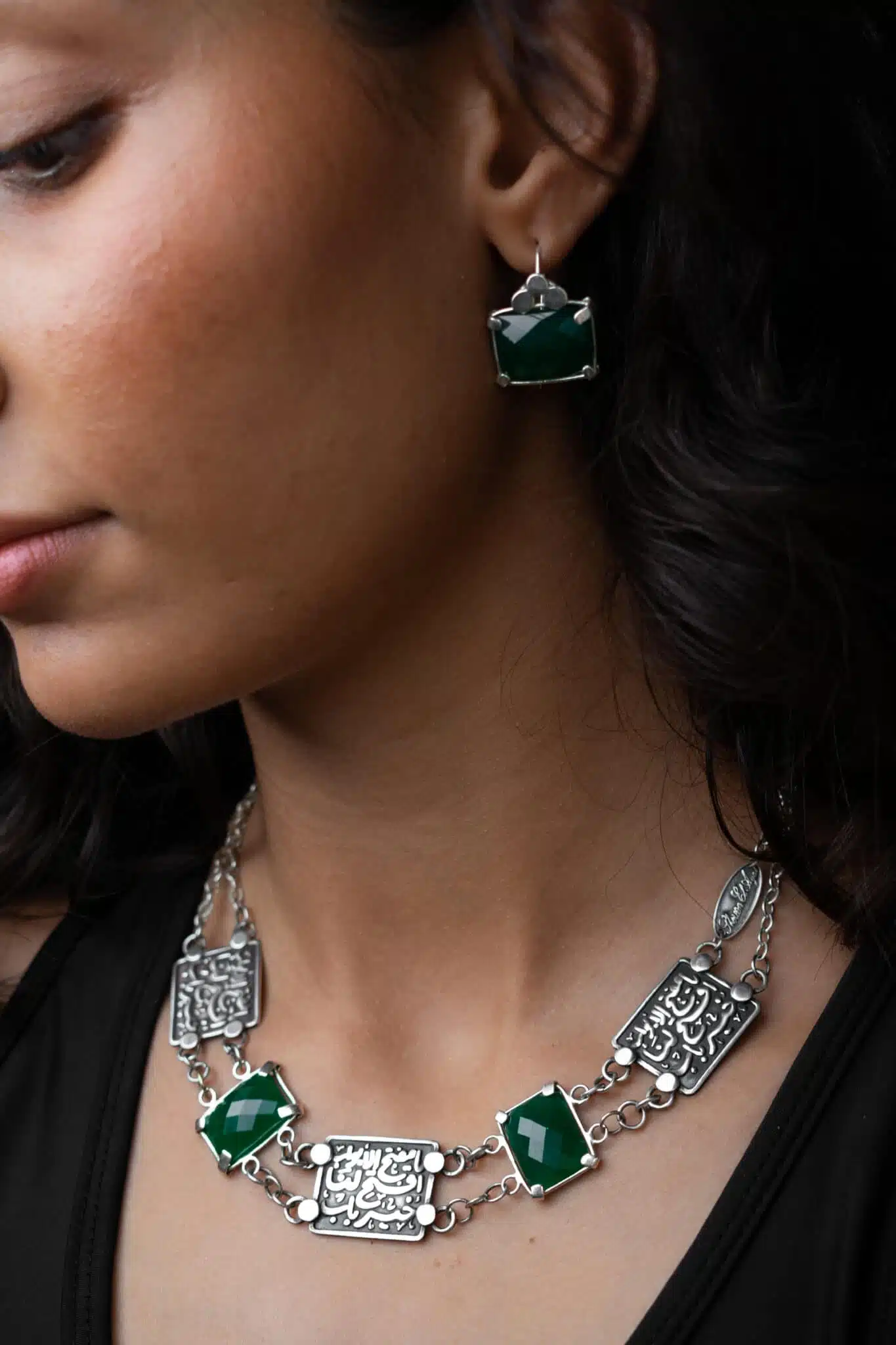 earrings silver 925 green stone