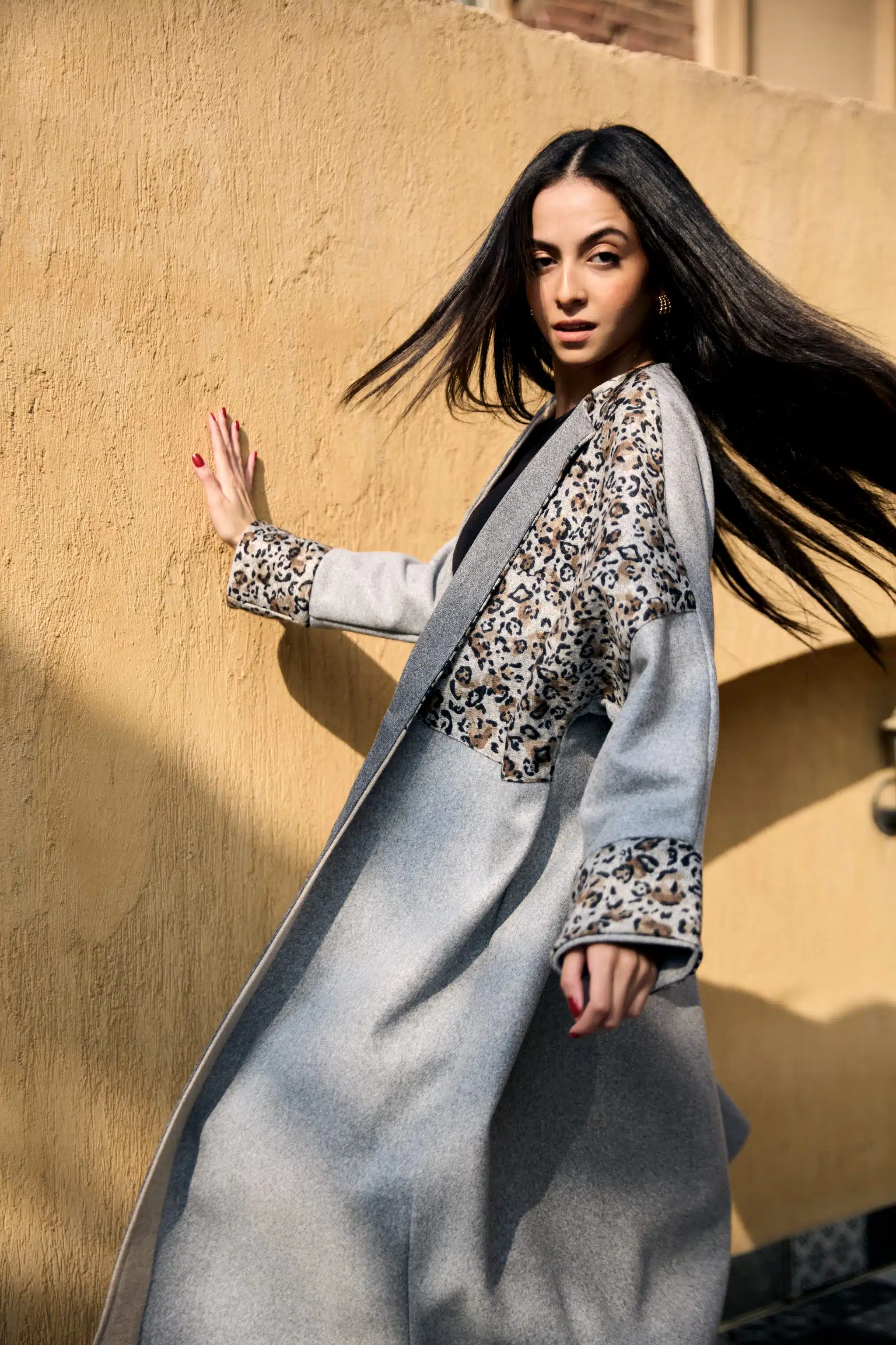 -Broadcloth grey coat with touch of tiger soft wool material