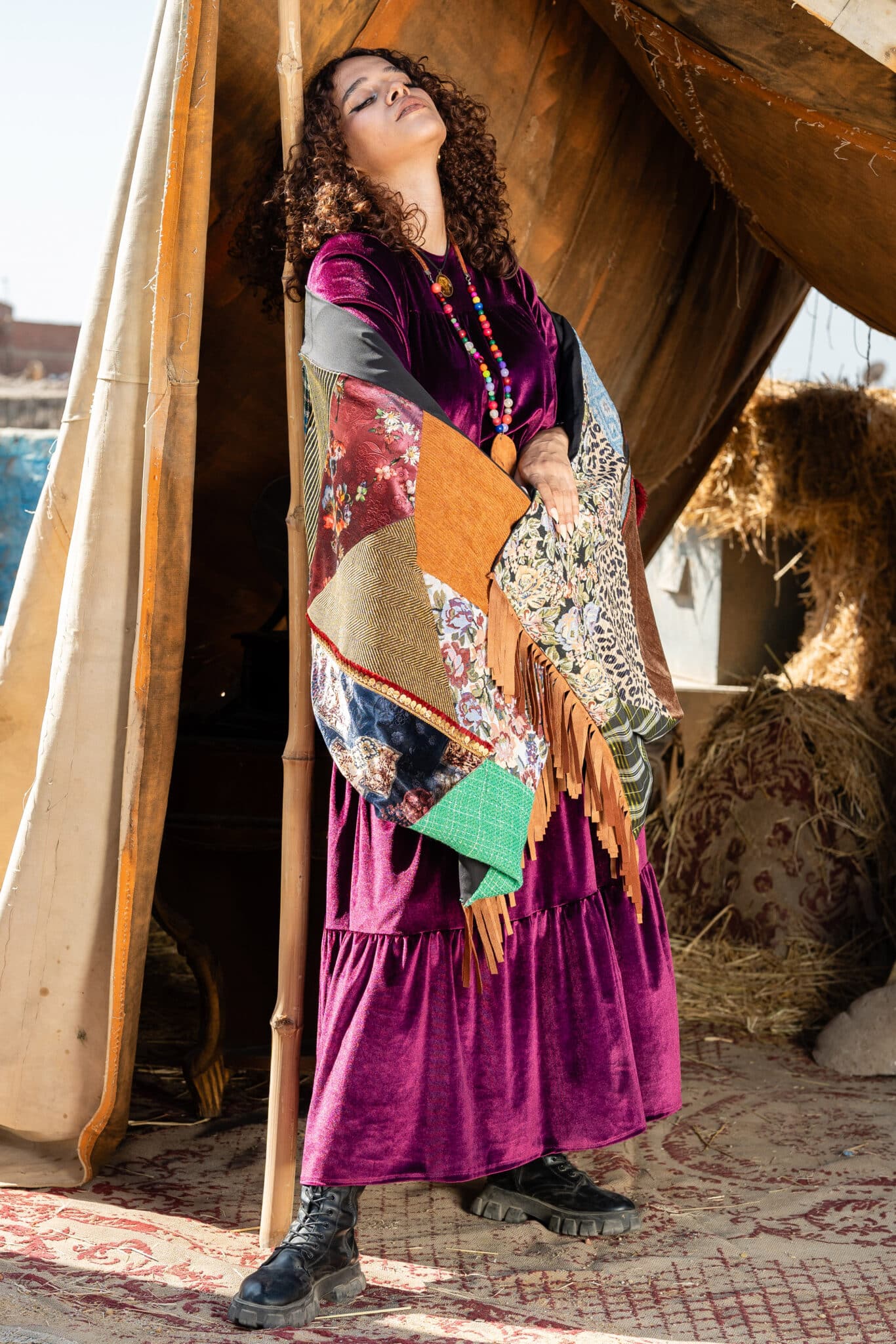 This handmade patchwork shawl is double layered and perfect addition to any outfit you can style it with jeans, skirt, or with our gypsy dress.
