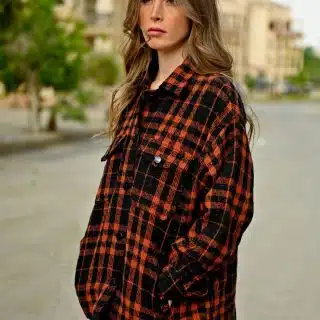 Textural detailing combines with knitted wool, boucle and tweed, two pockets on the front with an adjustable belt, can be worn on skirt and high boots or pants.
