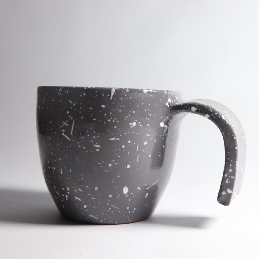 Pottery mug glassed Grey and White dots Mug Dimensions : Diameter : 8cm – Height : 7cm
