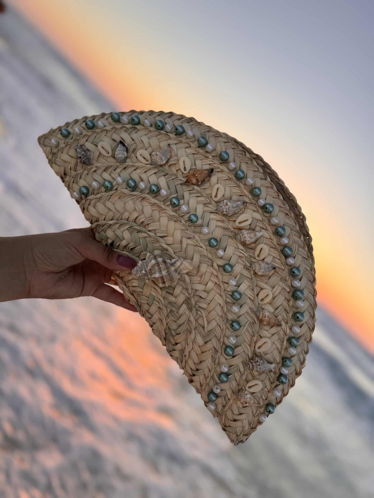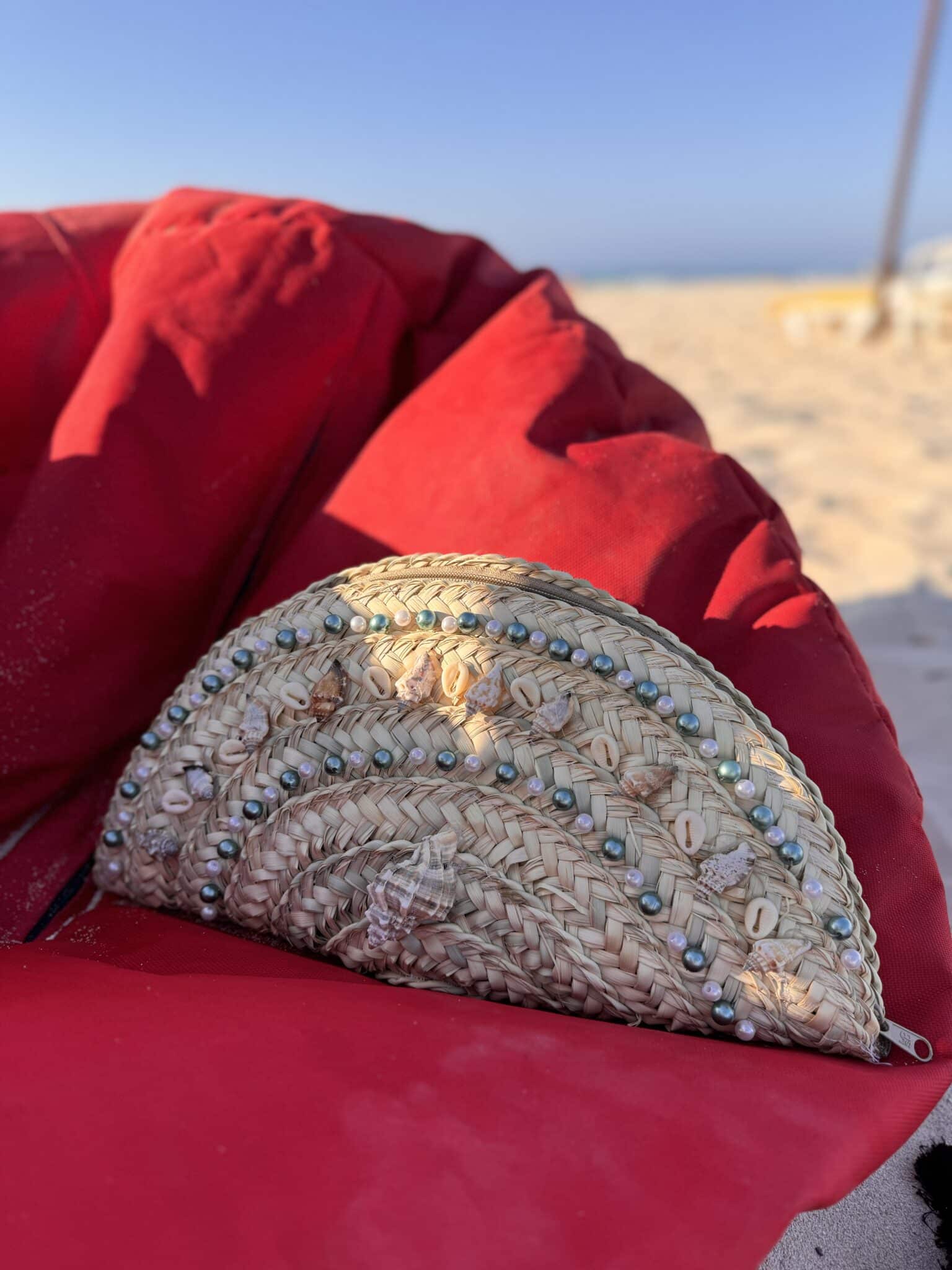 Handmade clutch with pearls and shells