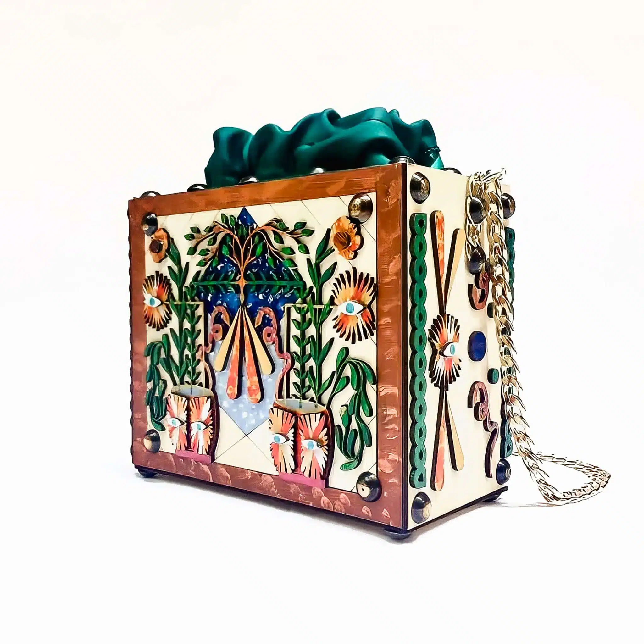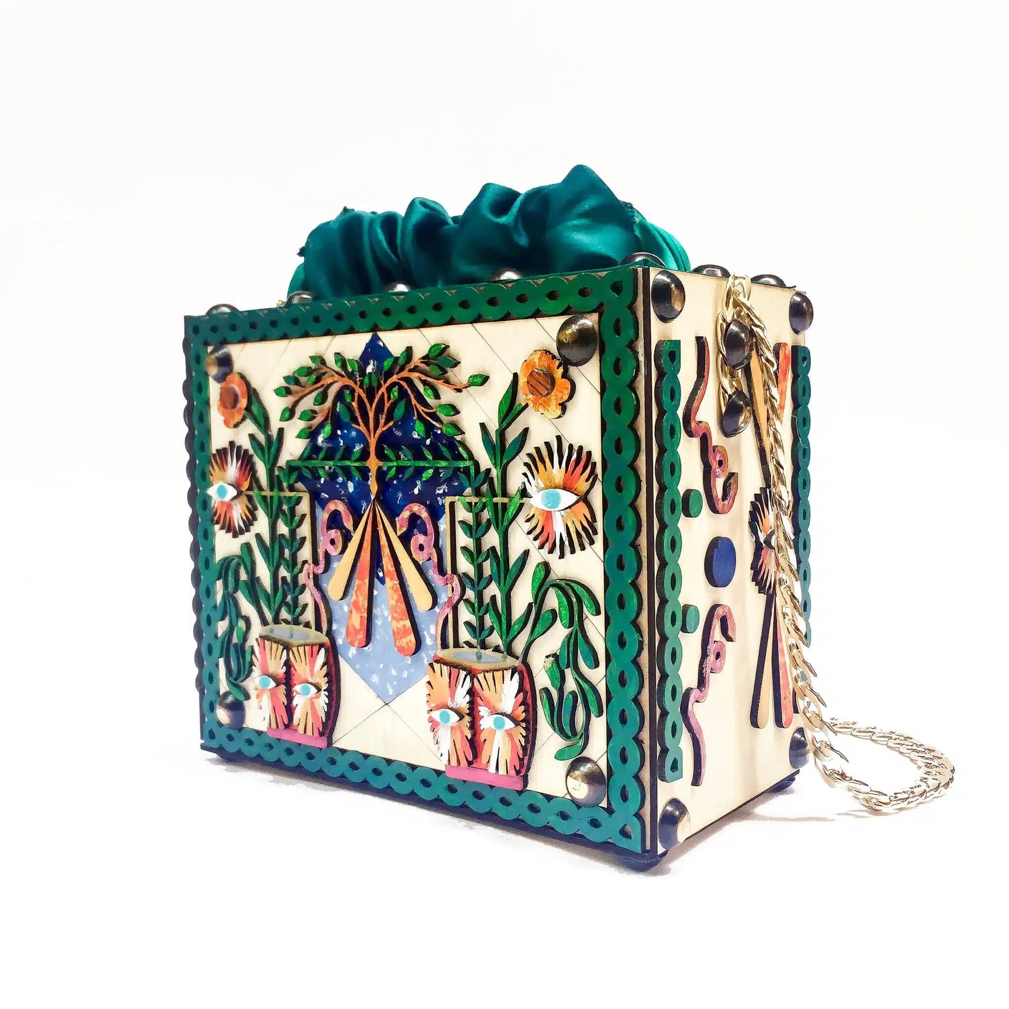 Hand painted wooden bag,