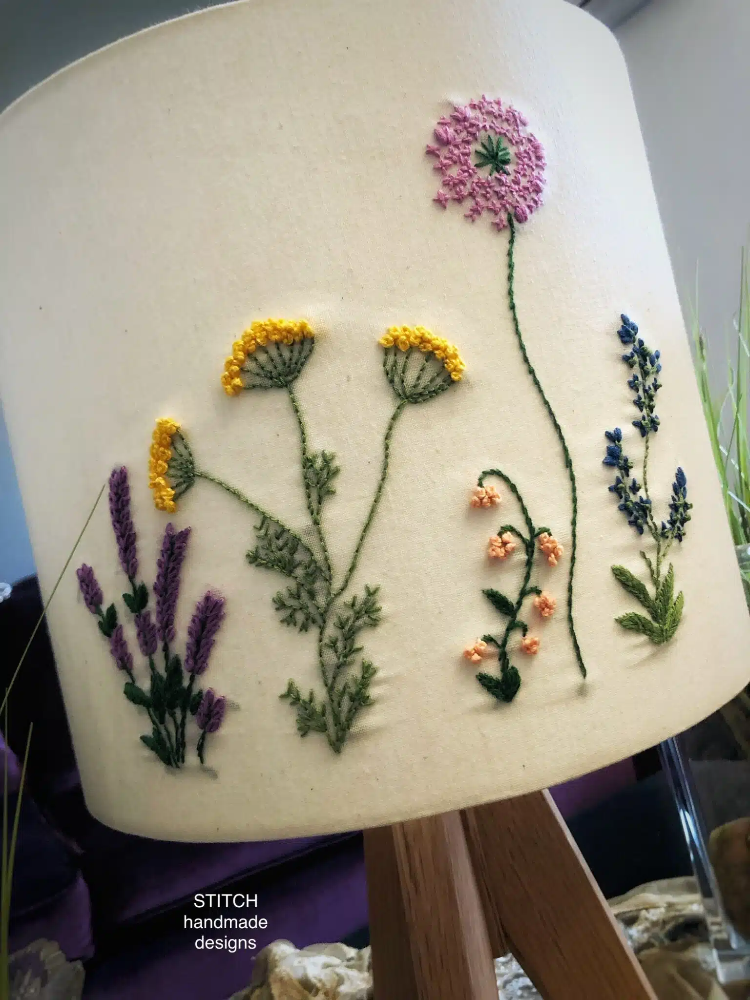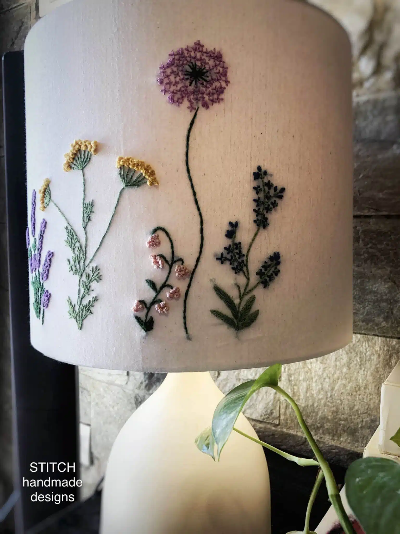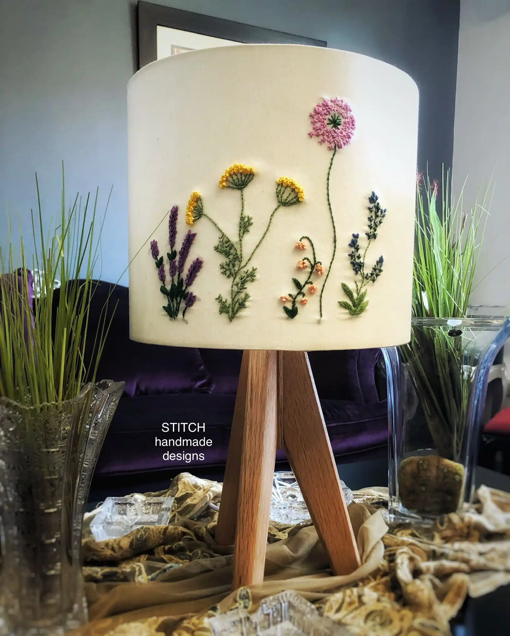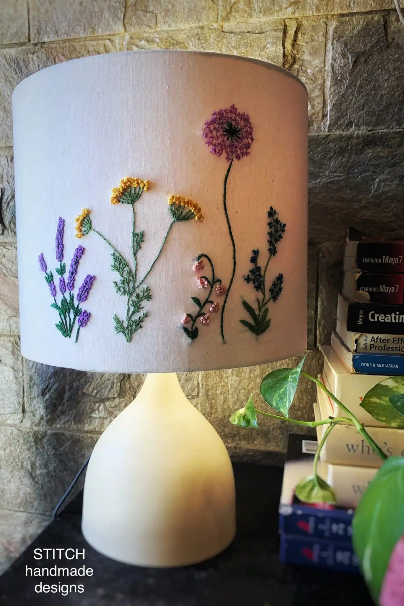 The hand embroidered lampshade adds a touch of craftsmanship, creating a warm and inviting glow.