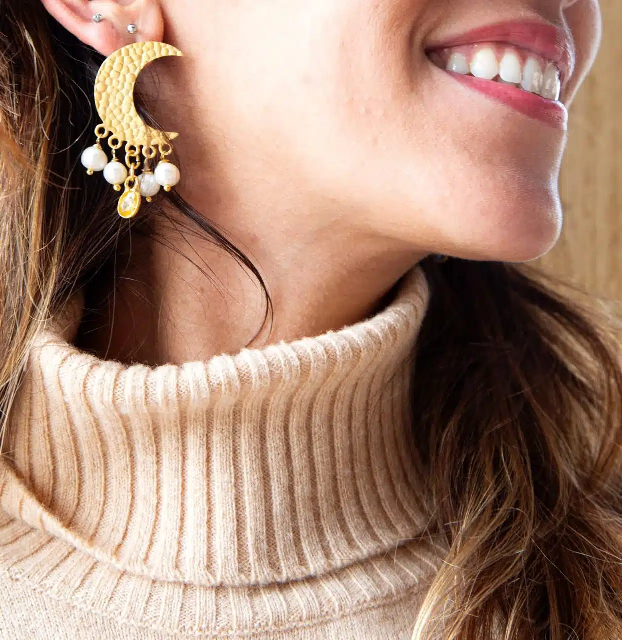 Hand made sterling silver earrings one gold plated with cultivated pearls one Star pair the 2nd s a Crescent