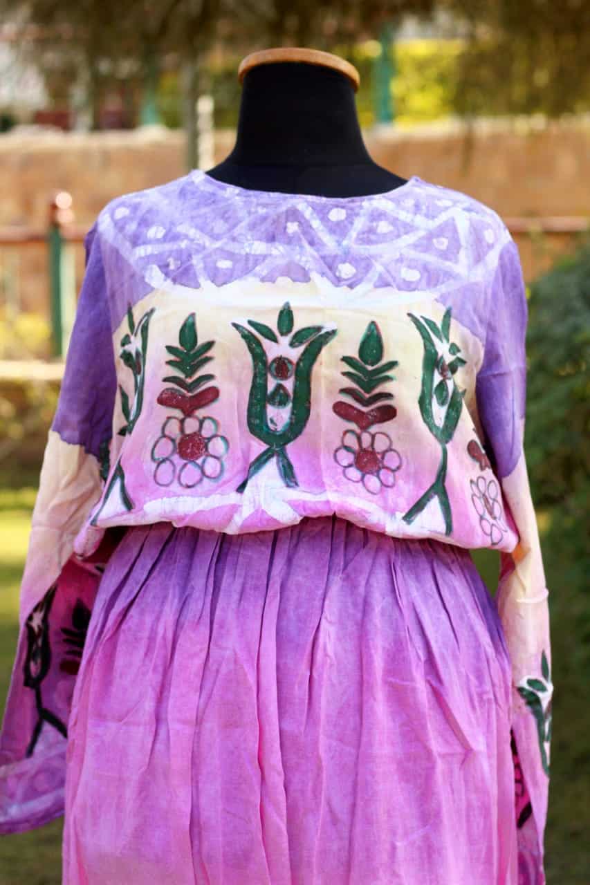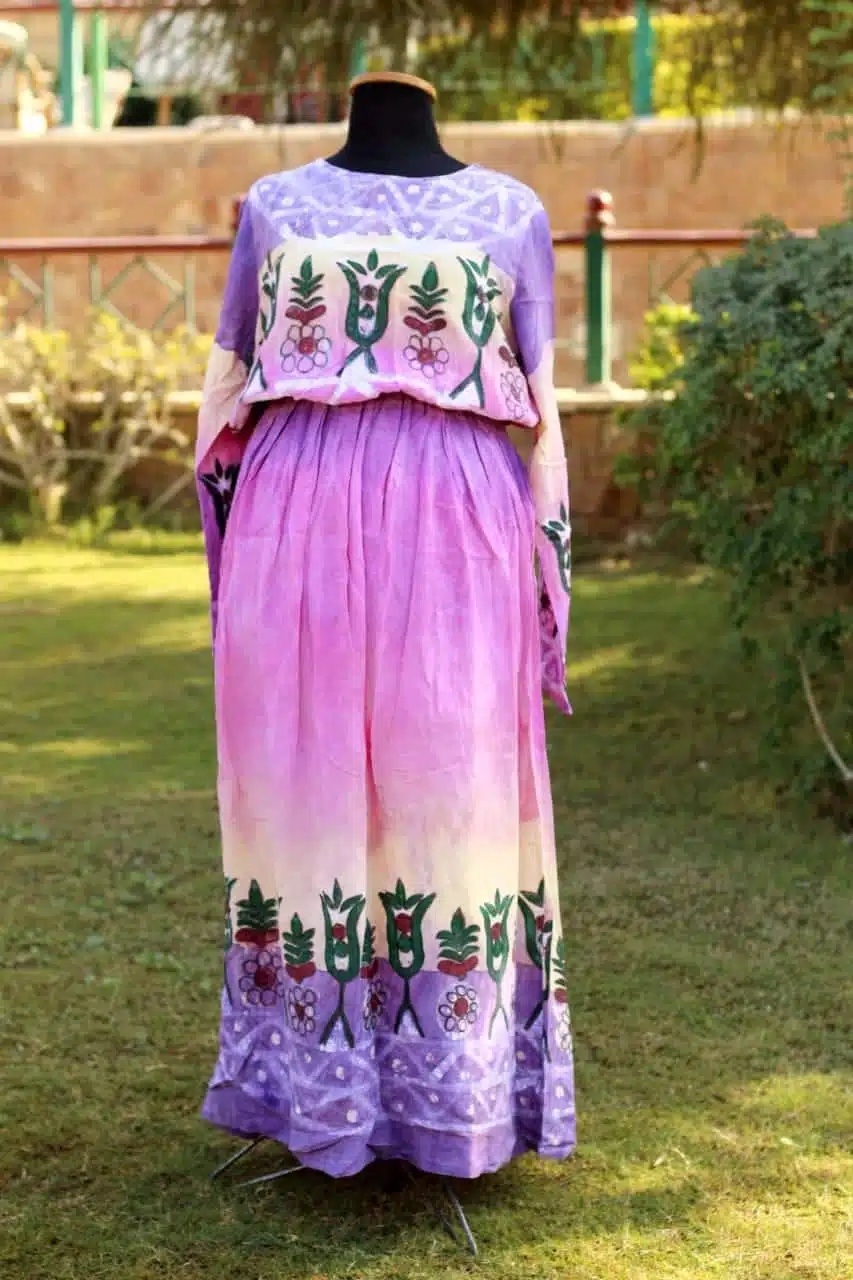 handmade printed dress from white 100% cotton fabric size till 80 kg.