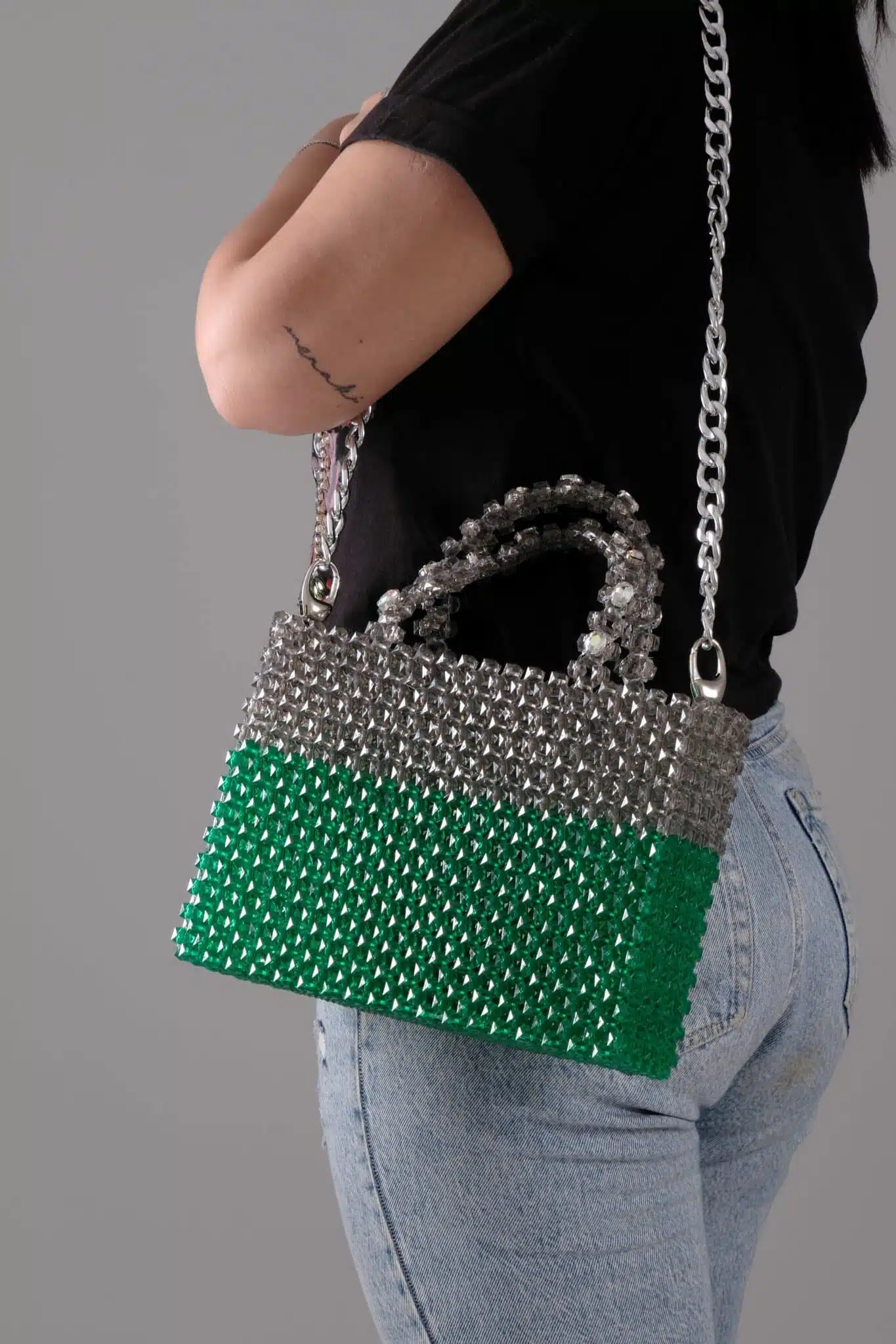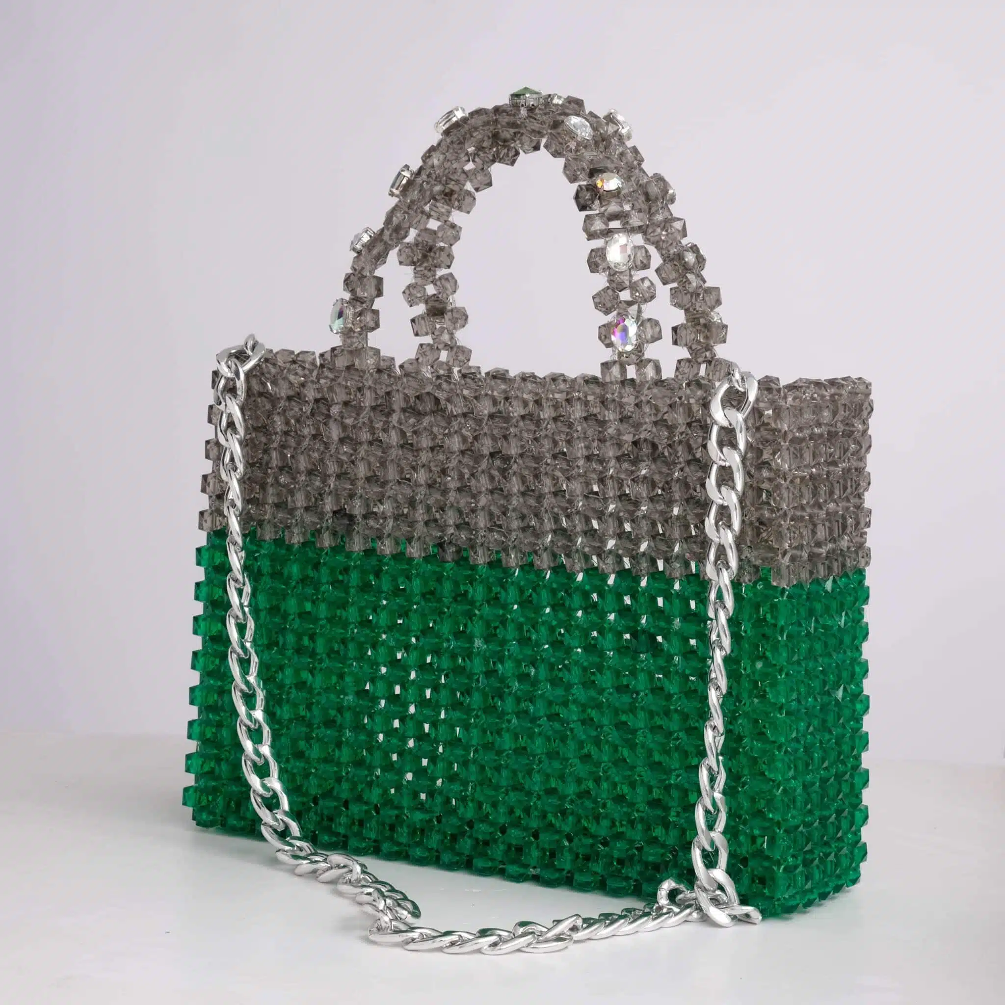 Handmade beaded bag with embellished handles, a sparkly piece of art to add to your wardrobe.