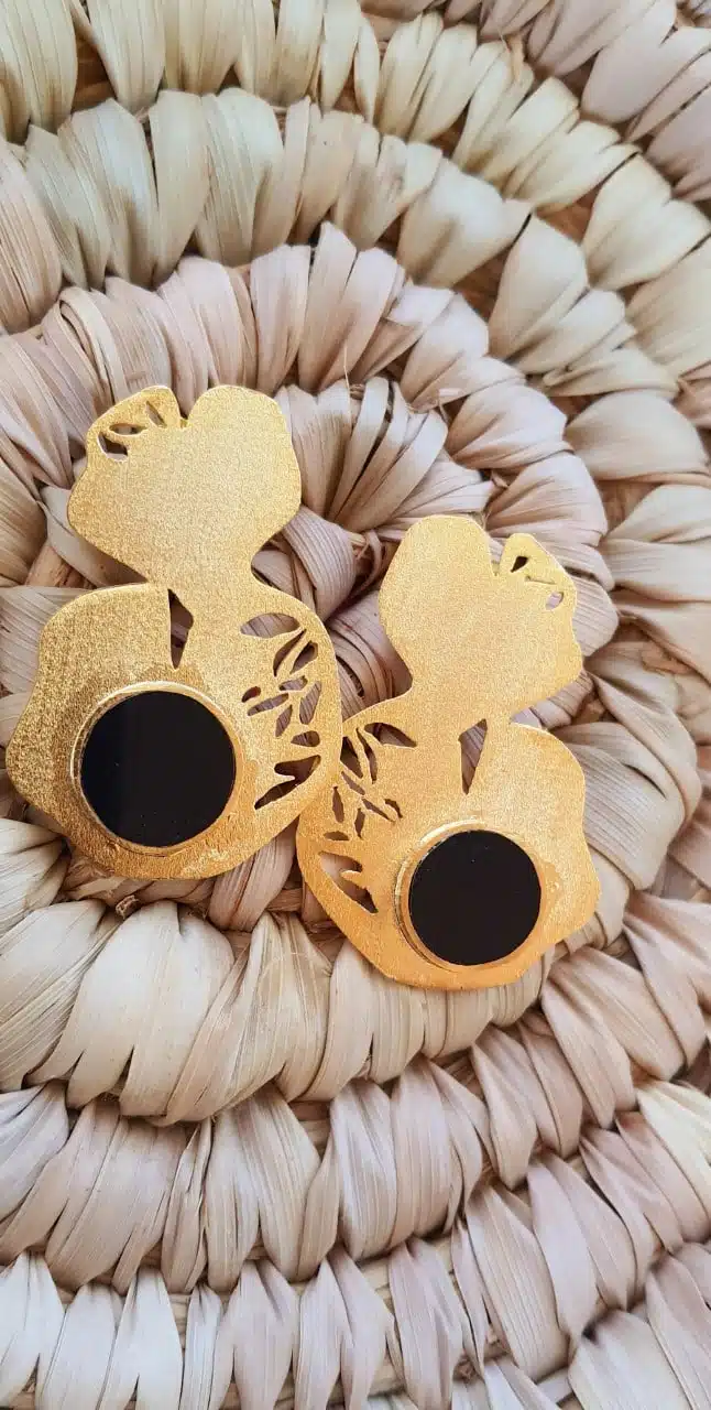 handmade earing made of copper plated with gold 18k and onyex stones by order in 7 days