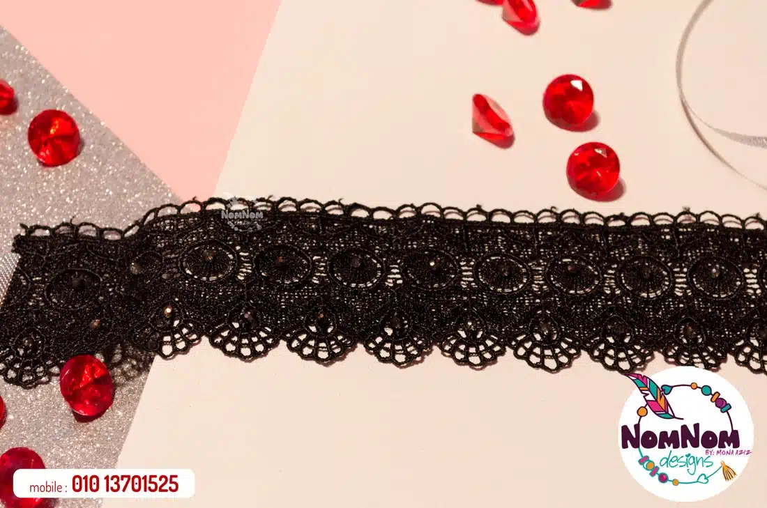 Handmade Fabric Choker with Glass Beads , nickel plated Lock
