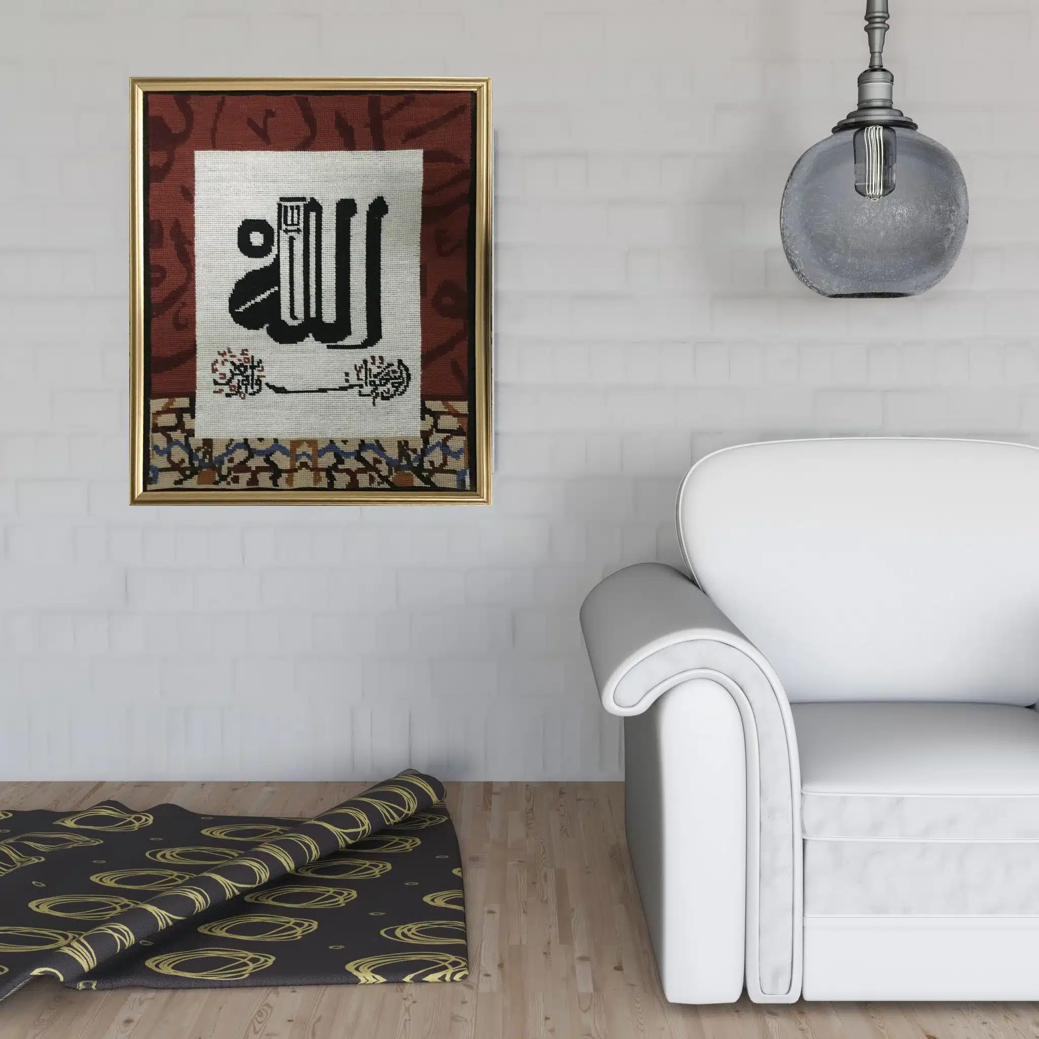 Handmade Framed Calligraphy Tapestry – “Allah” Design
