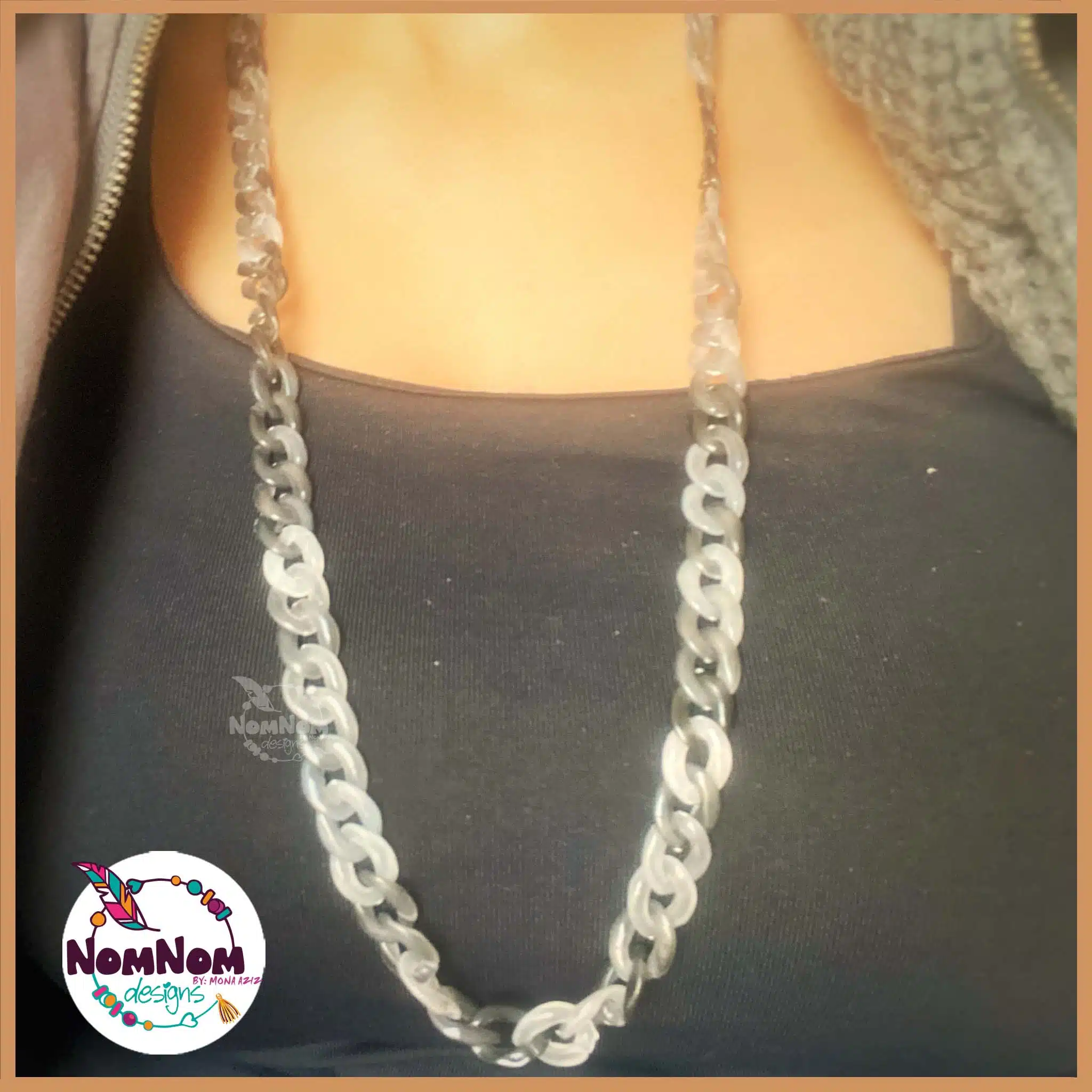 Handmade Funky Plastic Glass Chain with Nickel Parts- Green , Grey, Red or Yellow Color
