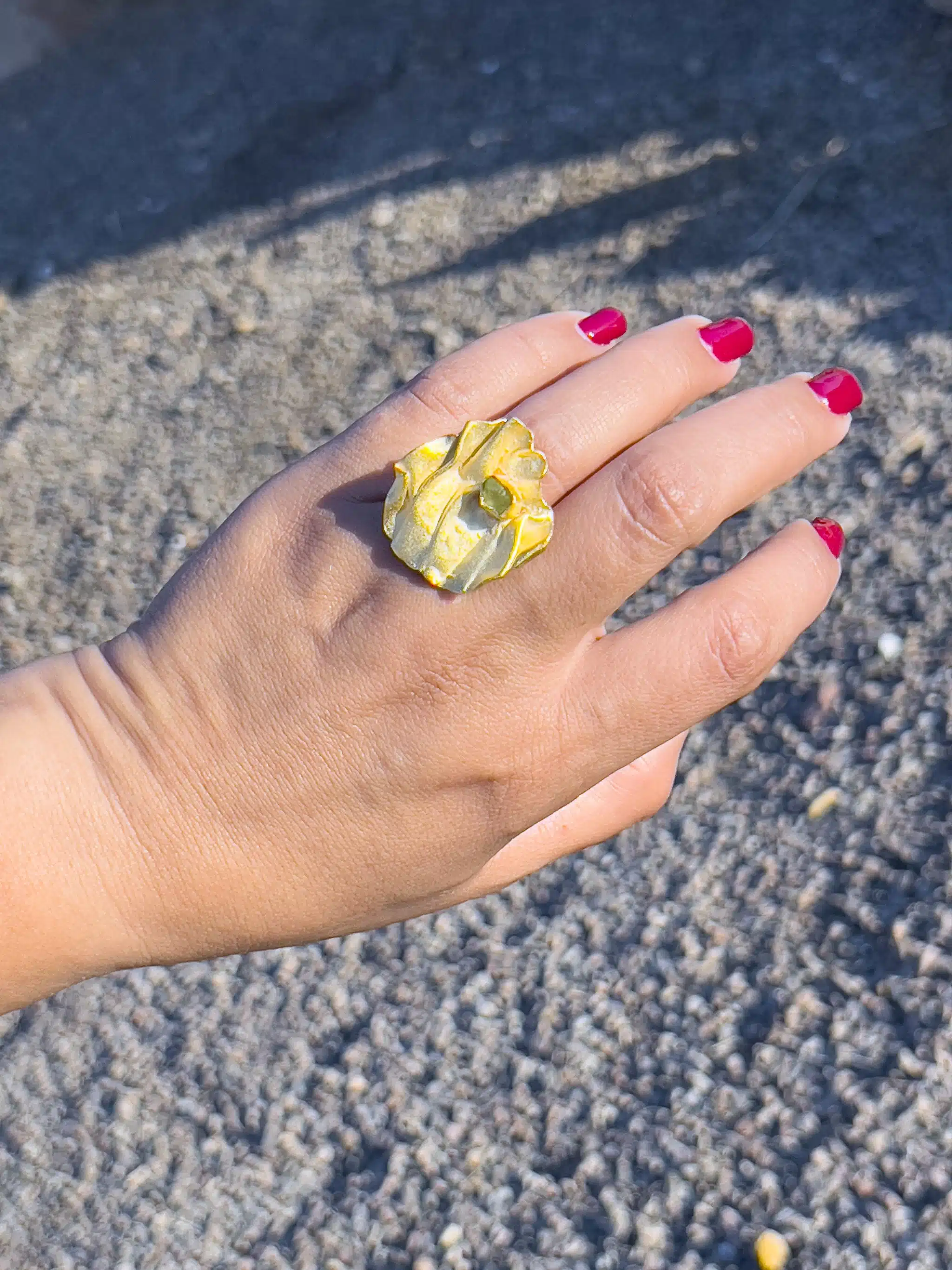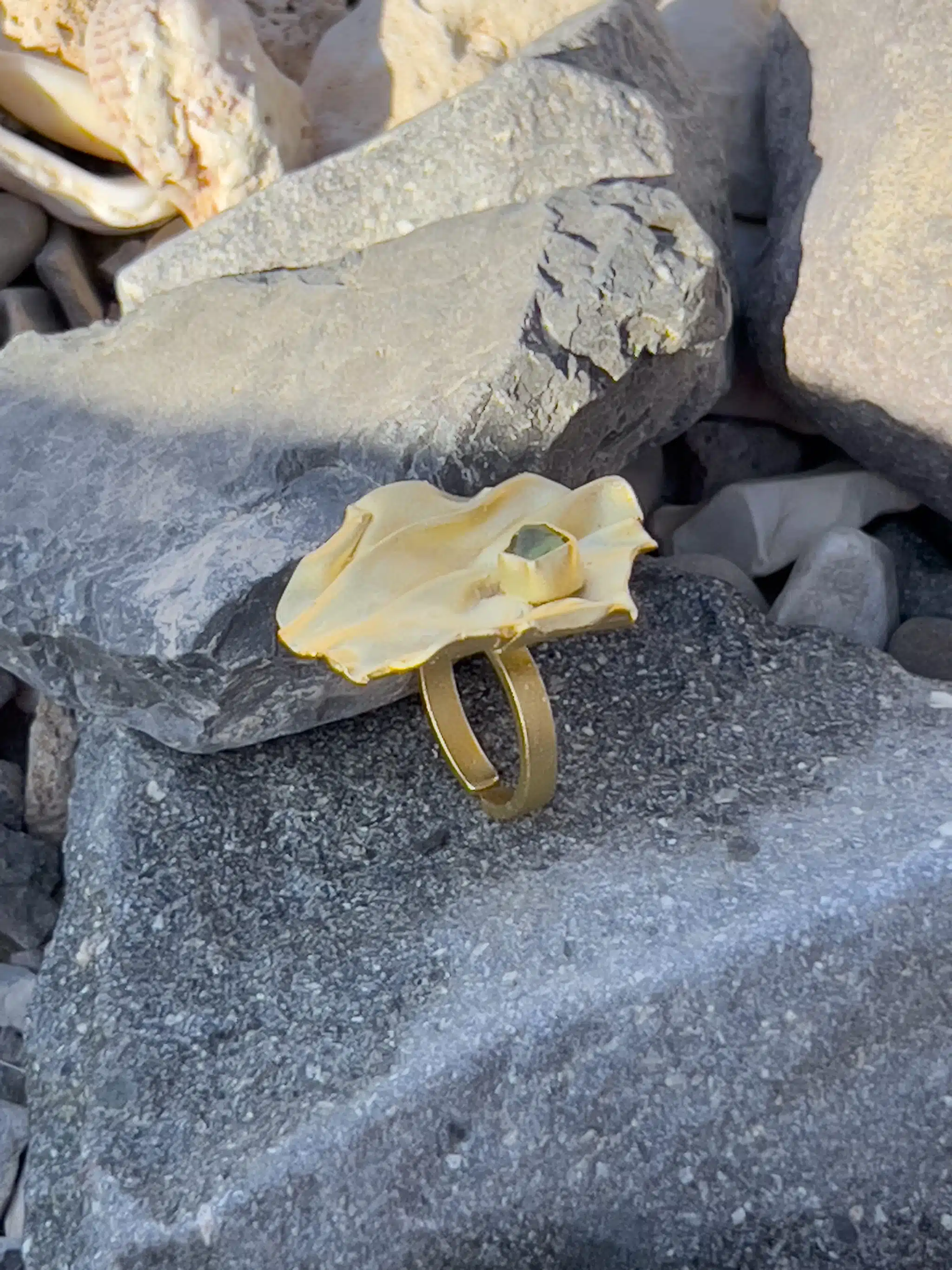 Handmade Gold Platted Sterling Silver Ring with a Peridot Gemstones, one of the few gemstones that occur in only one color, Each Fold and Form Reflects Organic Textures.