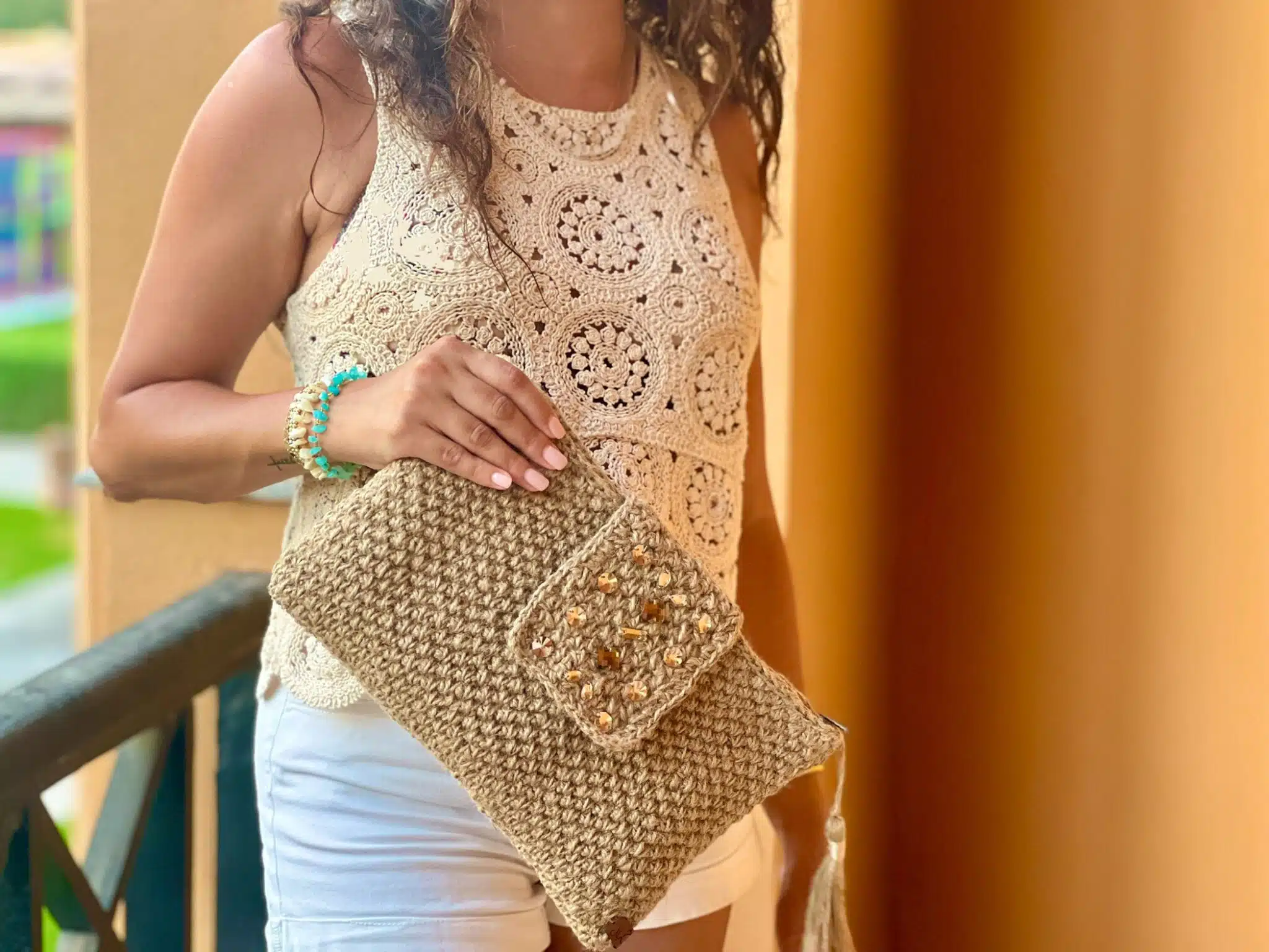 Handmade crochet Clutch made with Jute rope, beige color