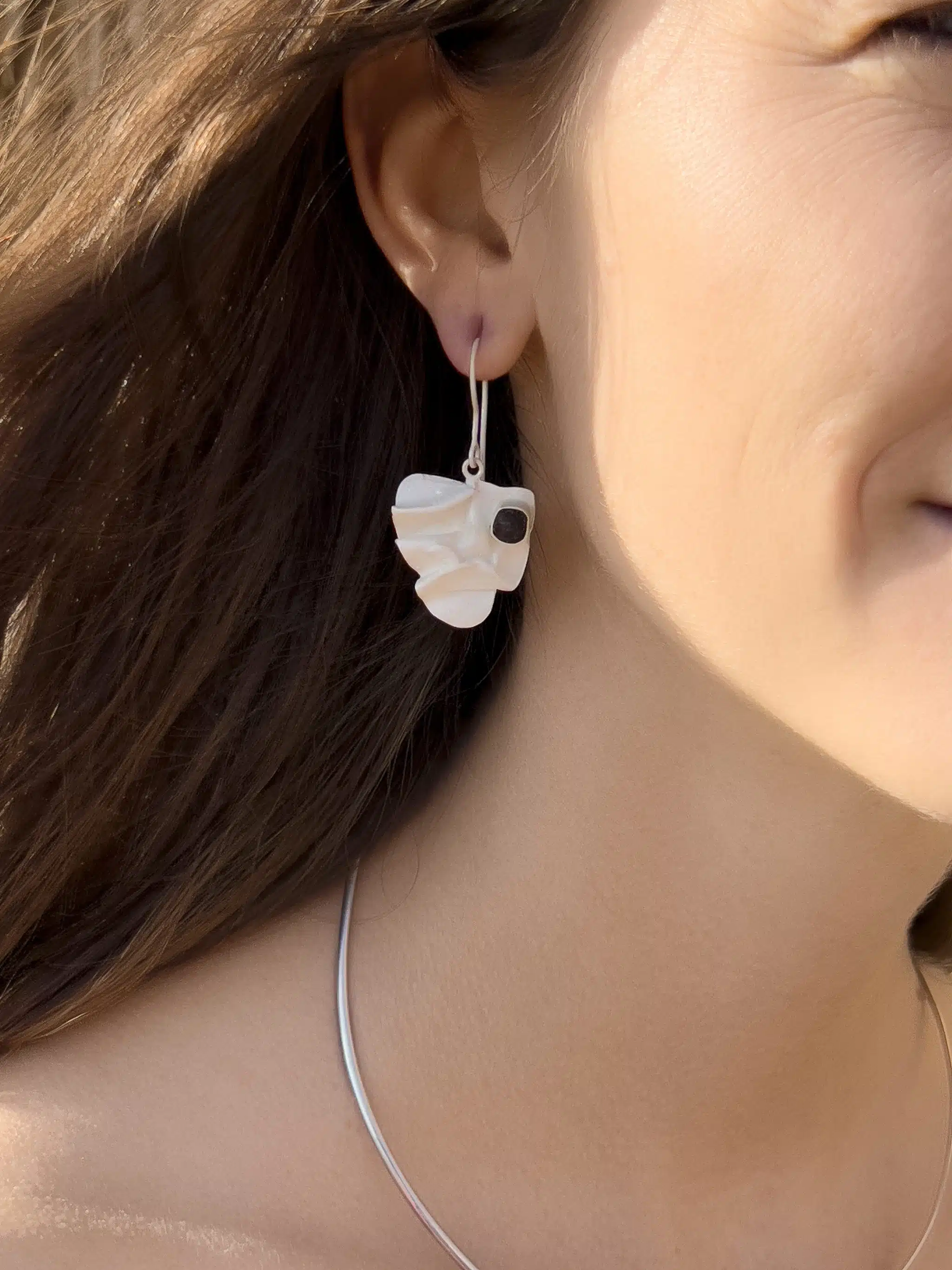 Handcrafted Sterling Matte Silver with an Agate Gemstone in warm, earthy tones, set in solid sterling silver. Each stone has its own unique shape and color.