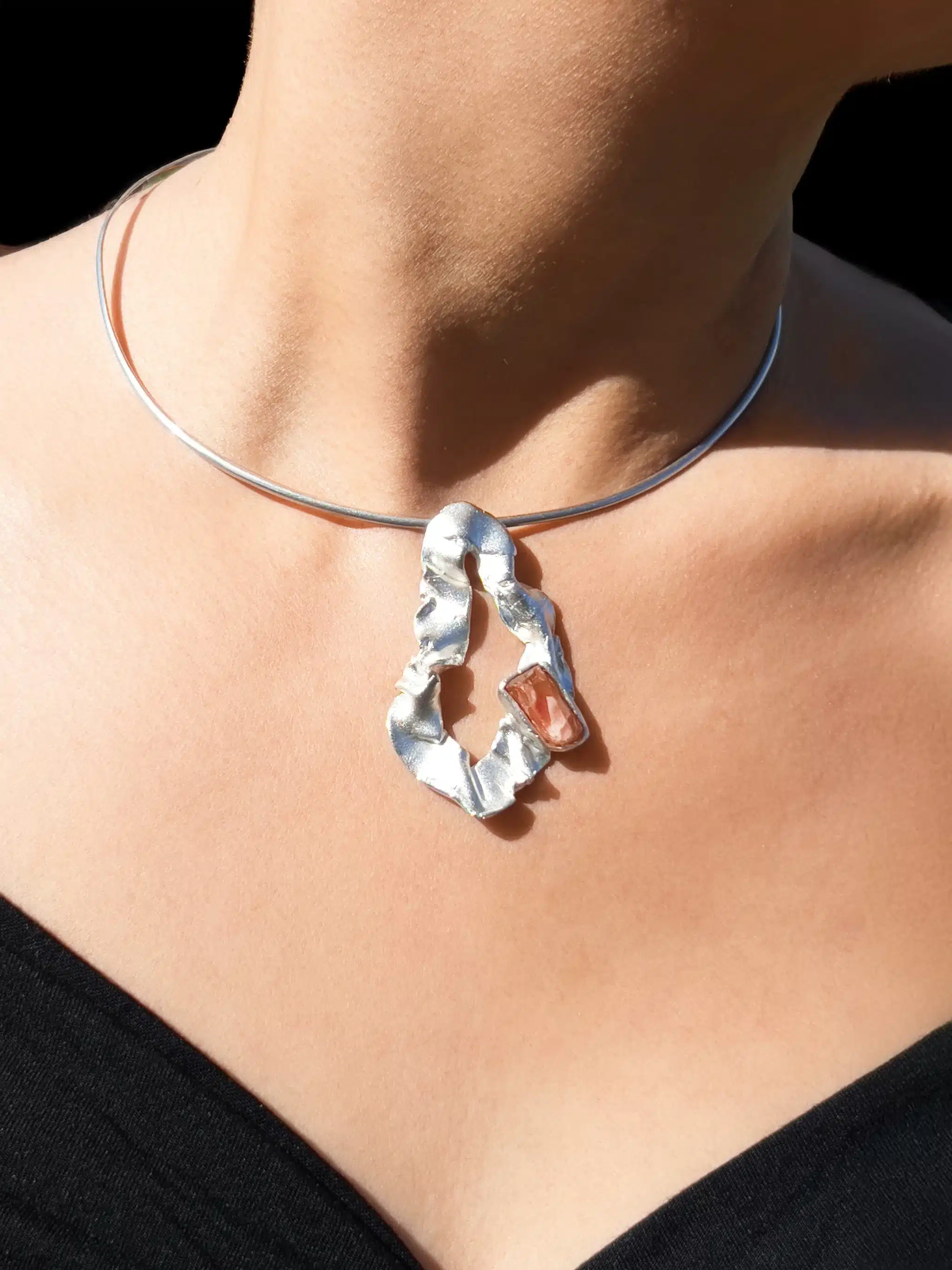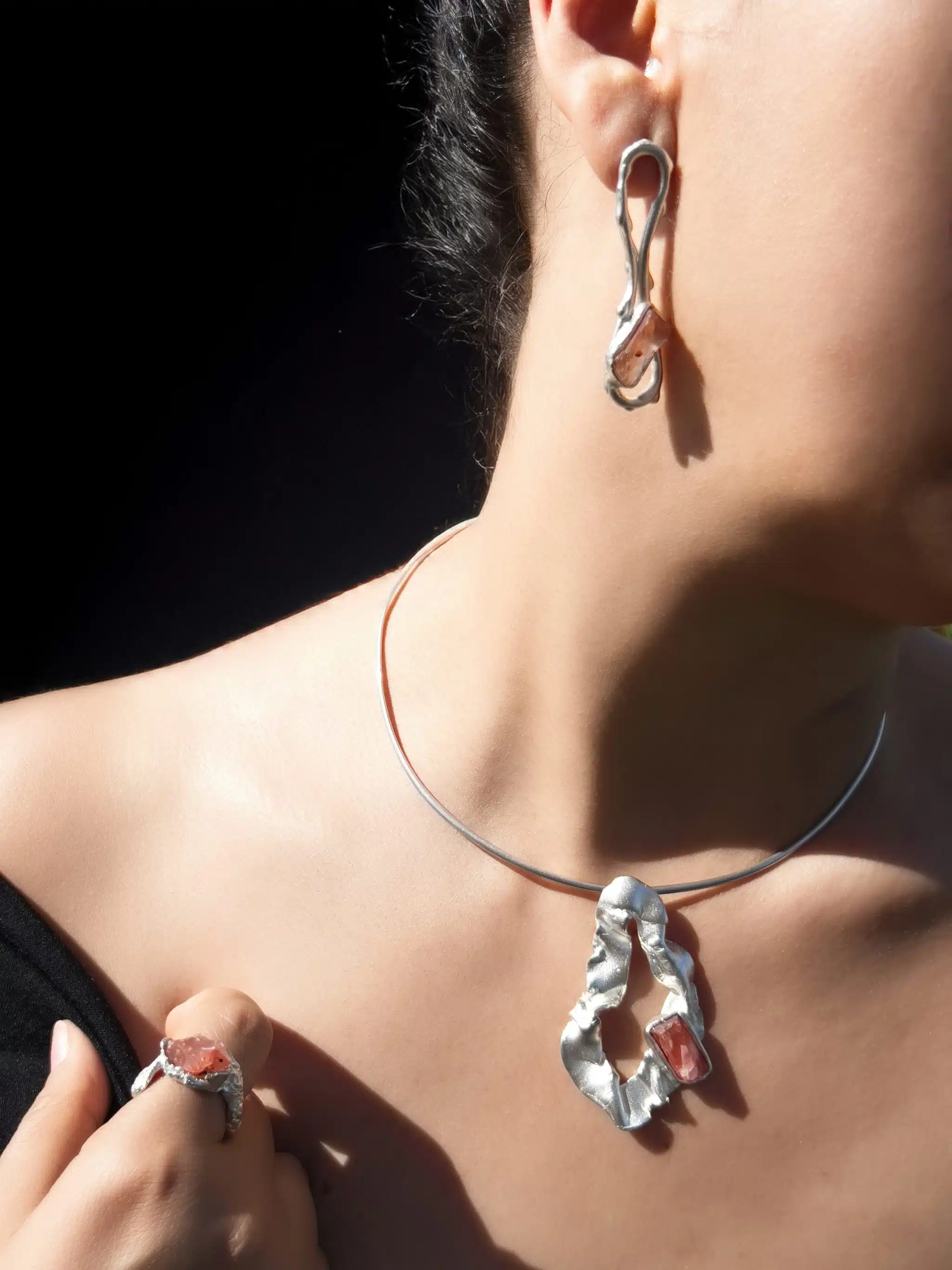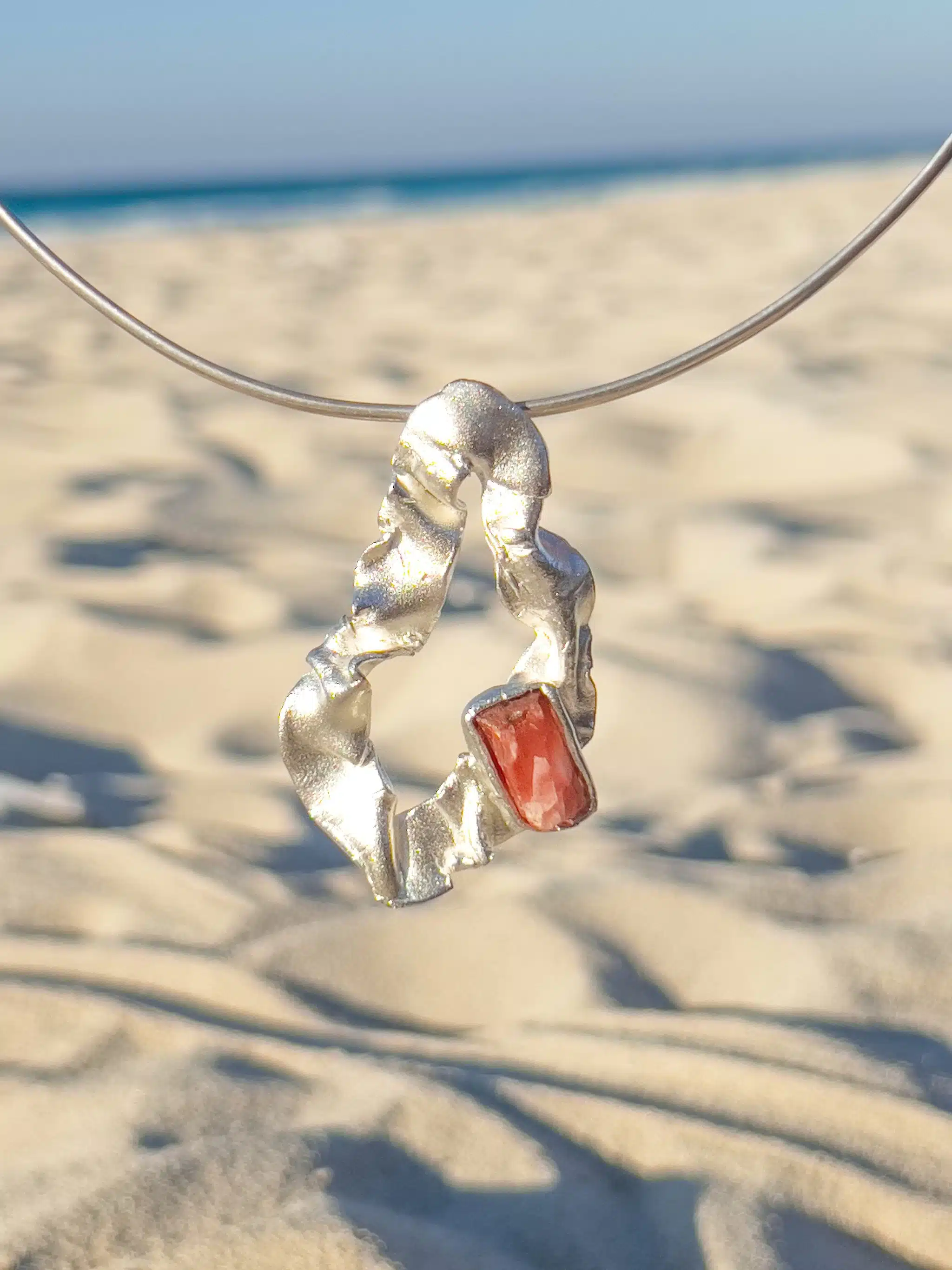 Handcrafted Sterling Matte Silver with a Red Volcanic Glass Gemstone that pulses with grounding and protective energy, formed from raw fire and earth. It ignites strength, clears negative energy, and anchors the spirit in stability and courage. A powerful ally for transformation and inner resilience. Each Fold and Form Reflects Organic Textures