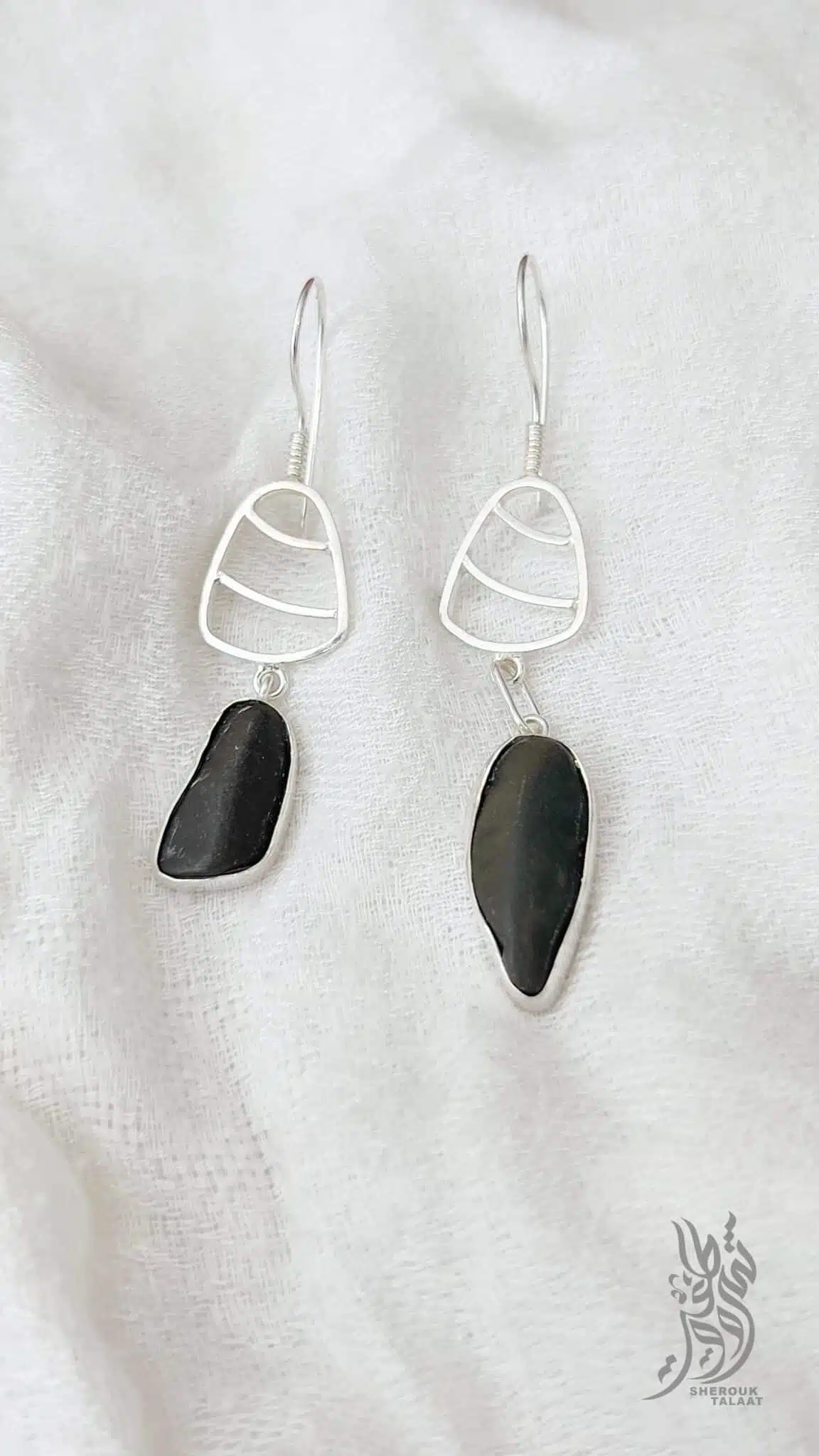 Handmade Sterling Silver Earrings, black stones