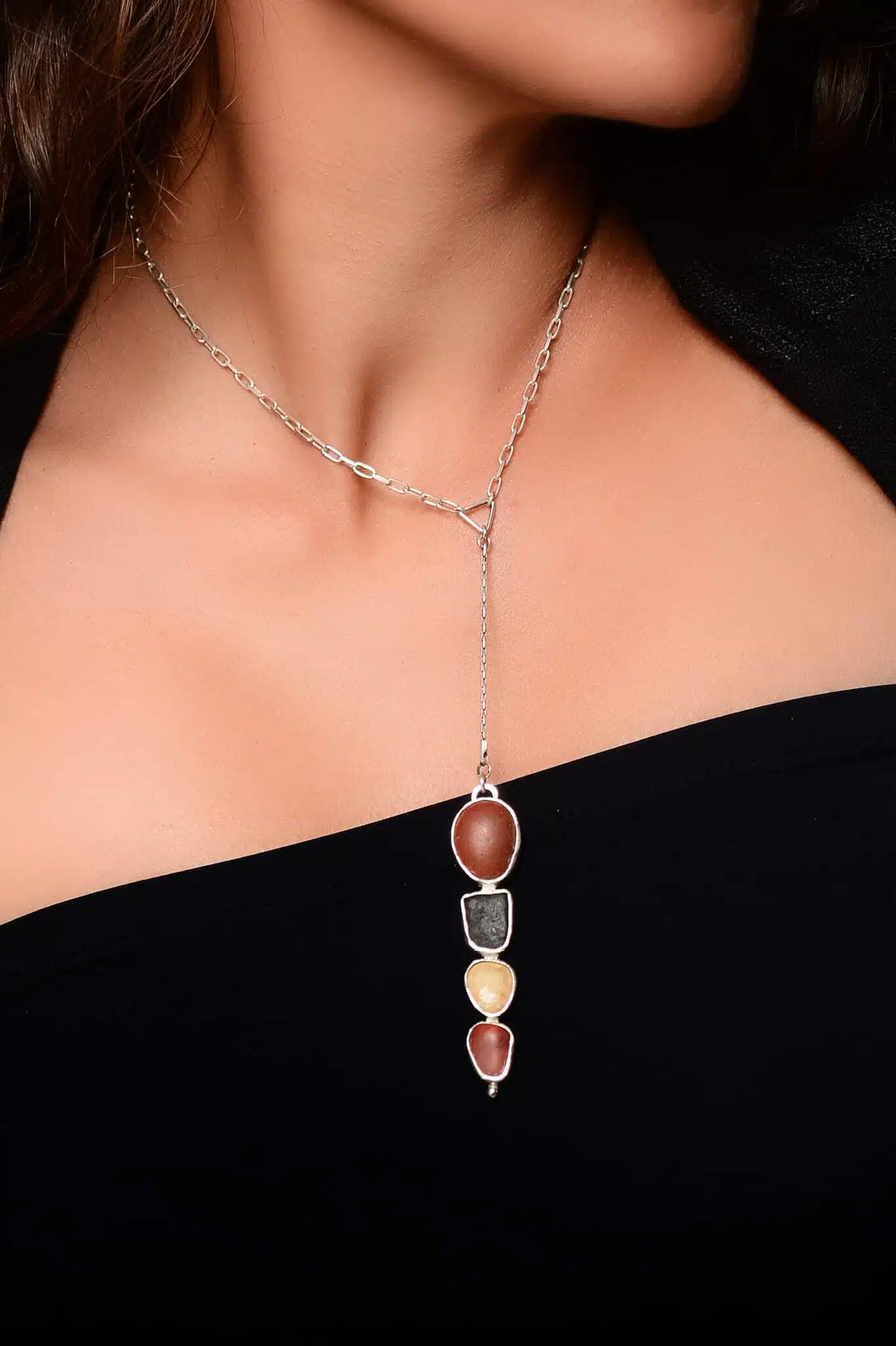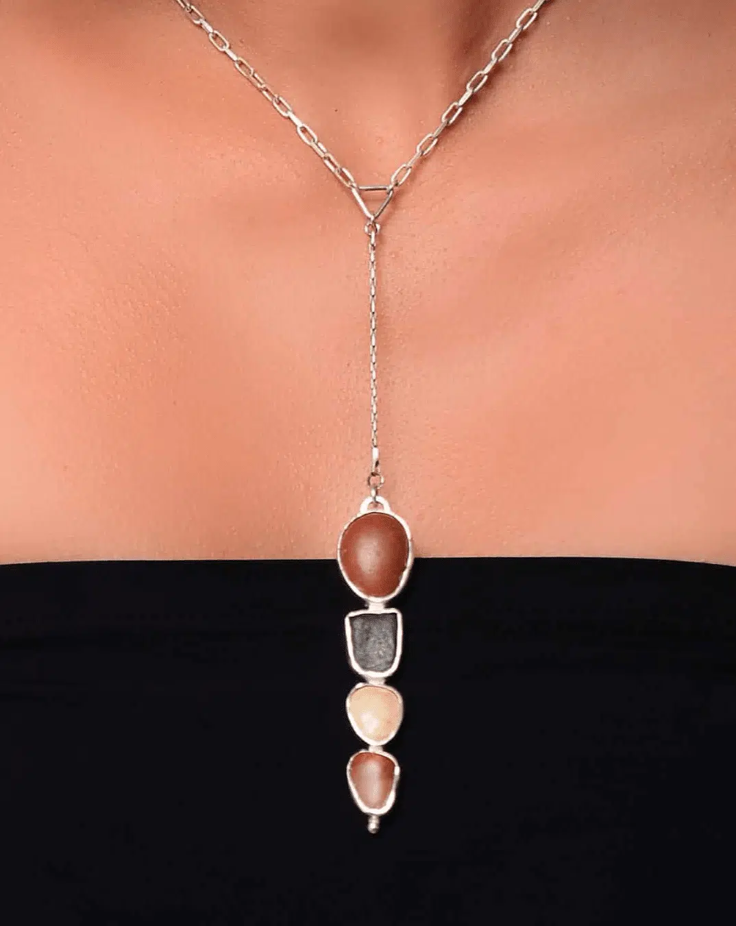 Handmade Sterling Silver Beach and Desert Stone, Necklace/Natural Stone Necklace/Agate stone in raw shape
