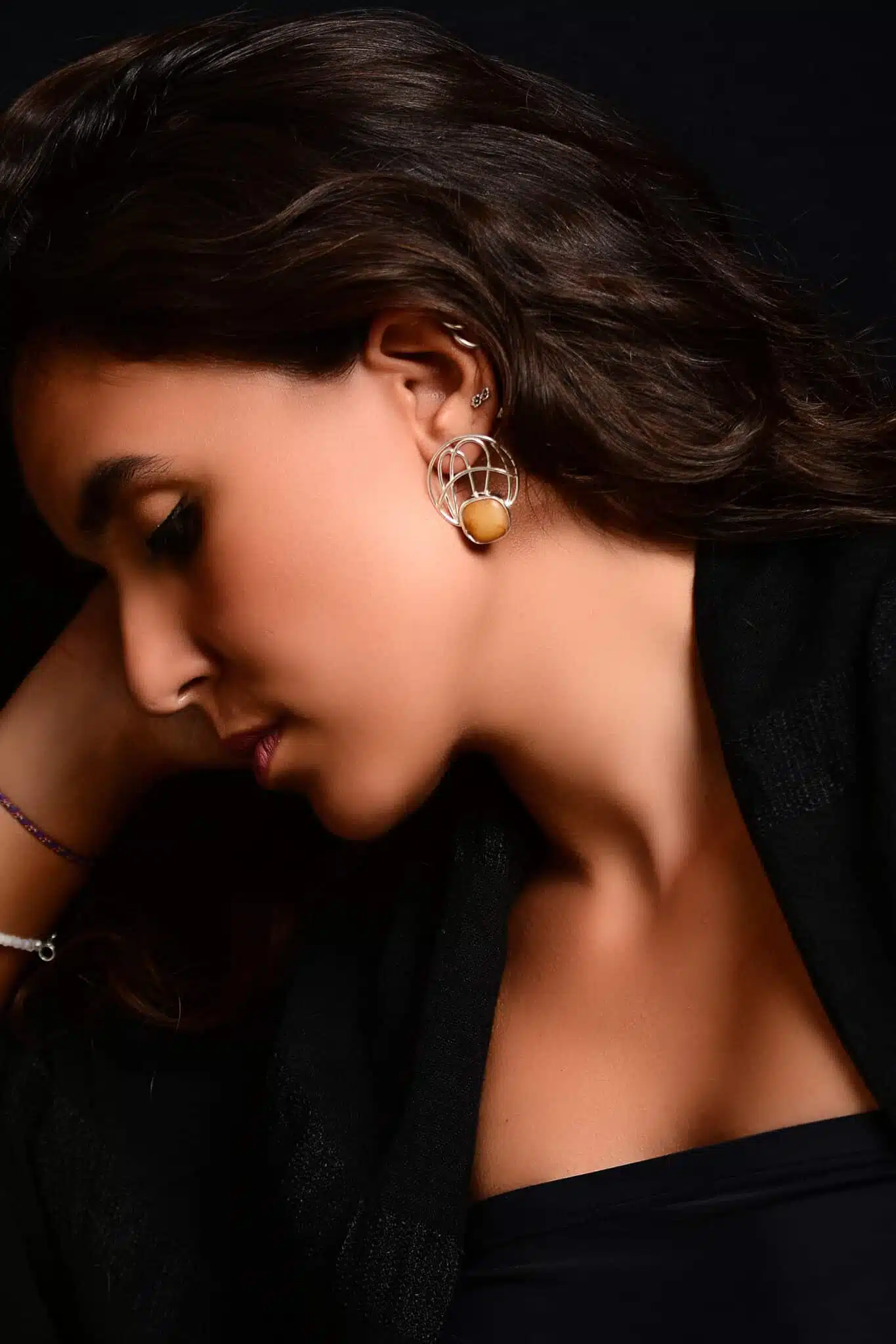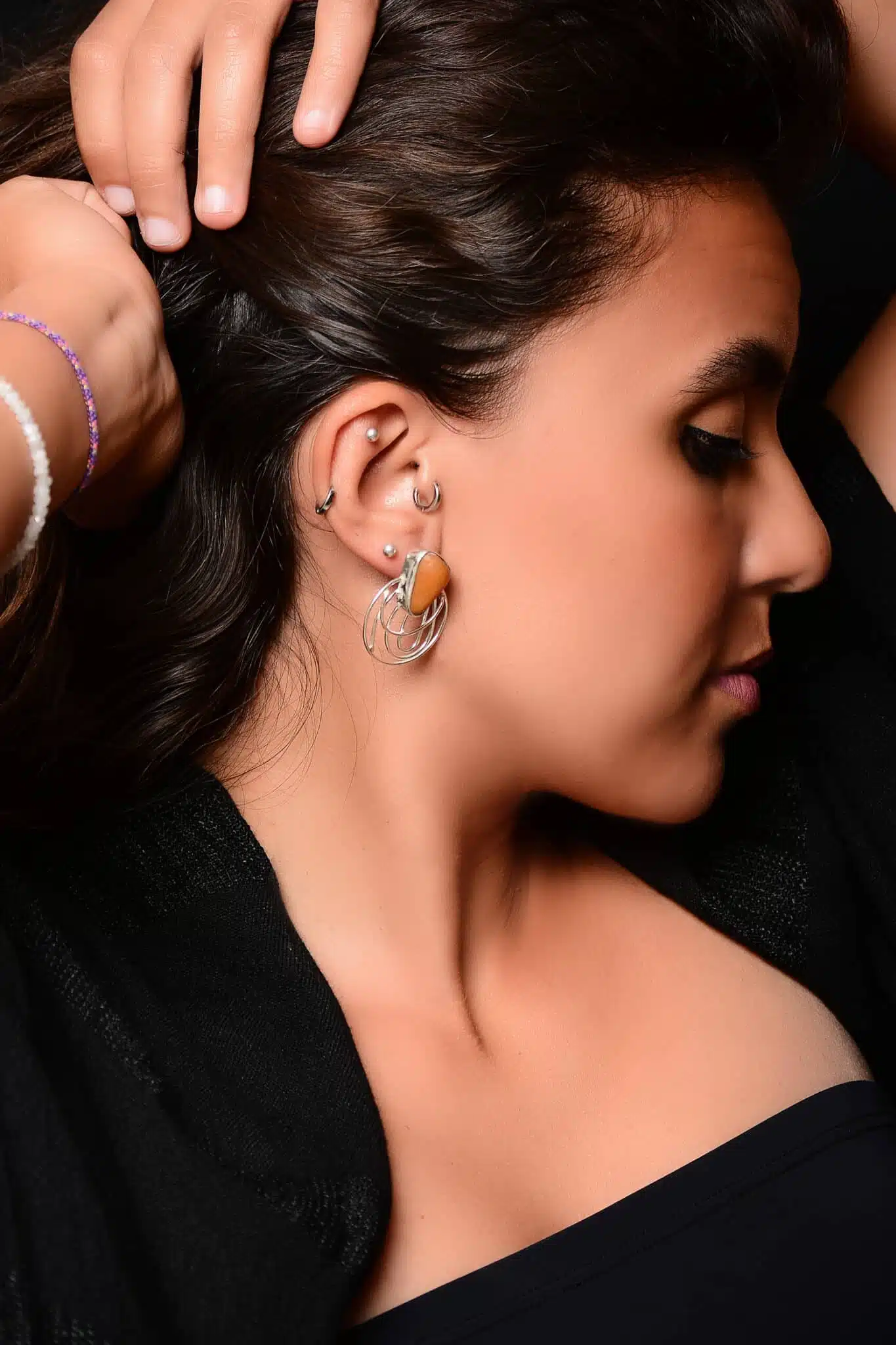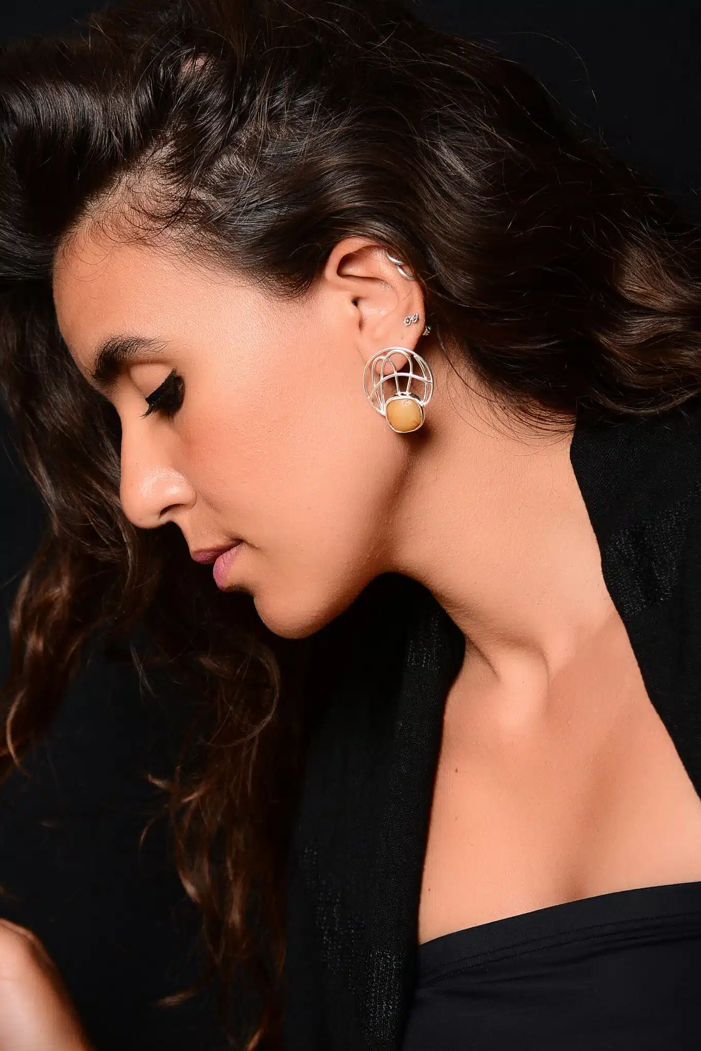Handmade Sterling Silver Desert Stone, /Natural Stone Earrings/Agate stone in raw shape