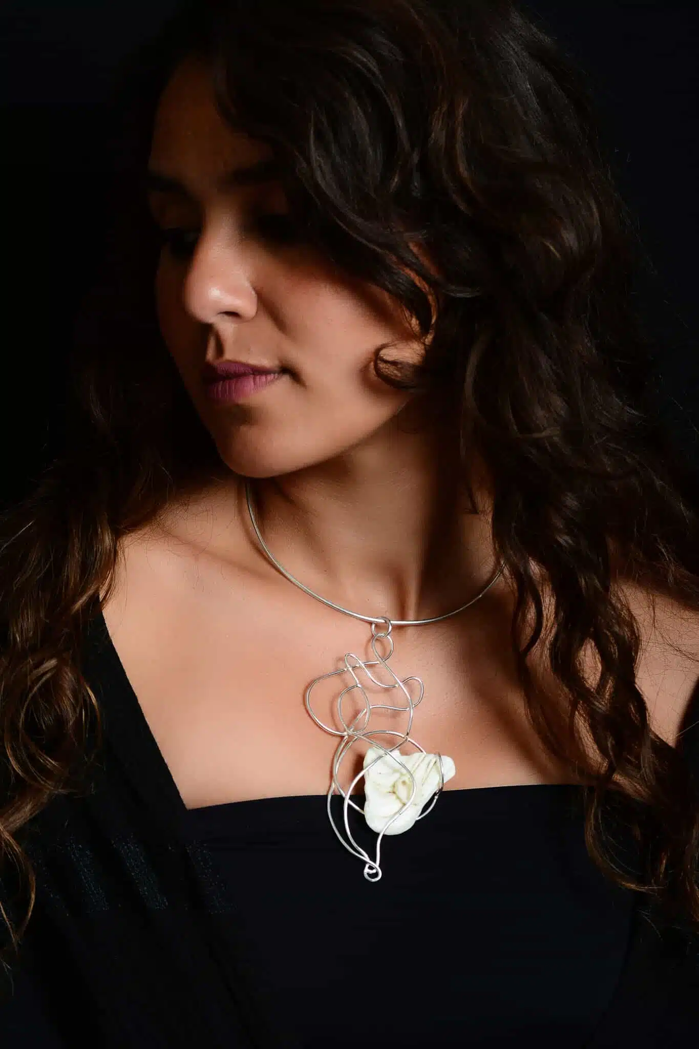 Handmade Sterling Silver, fossilized seashell stone, Necklace/Natural Stone Necklace.