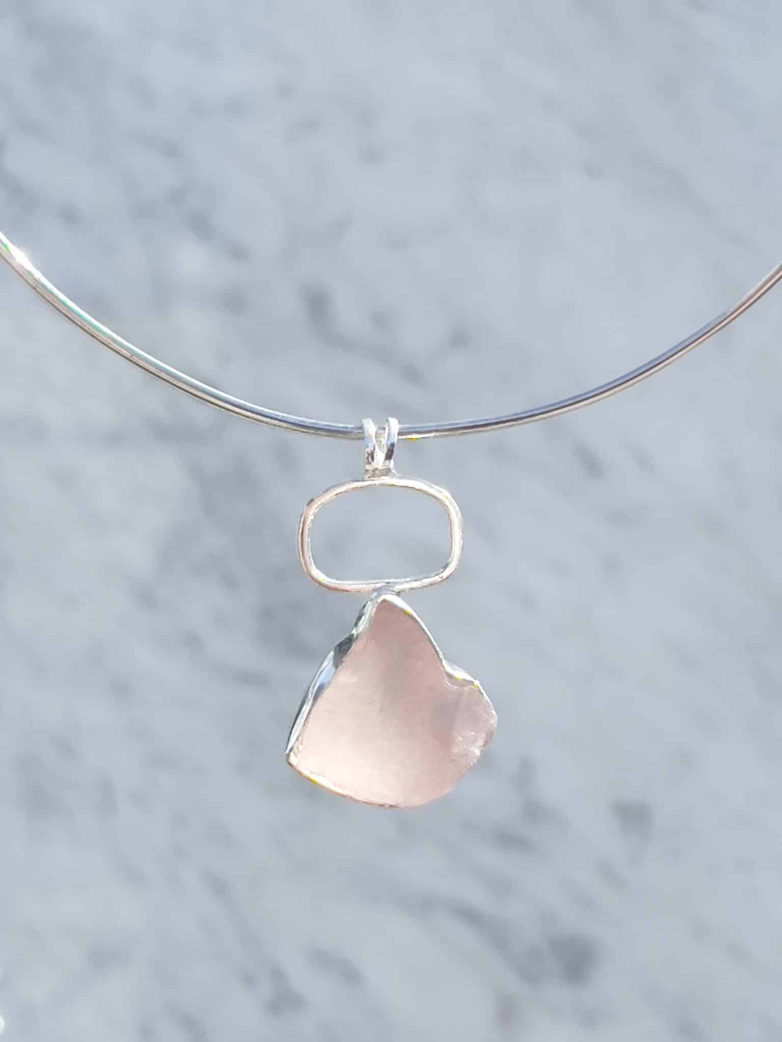 Handcrafted Sterling Silver Pendant with a Rose Quartz Natural Raw Crystals