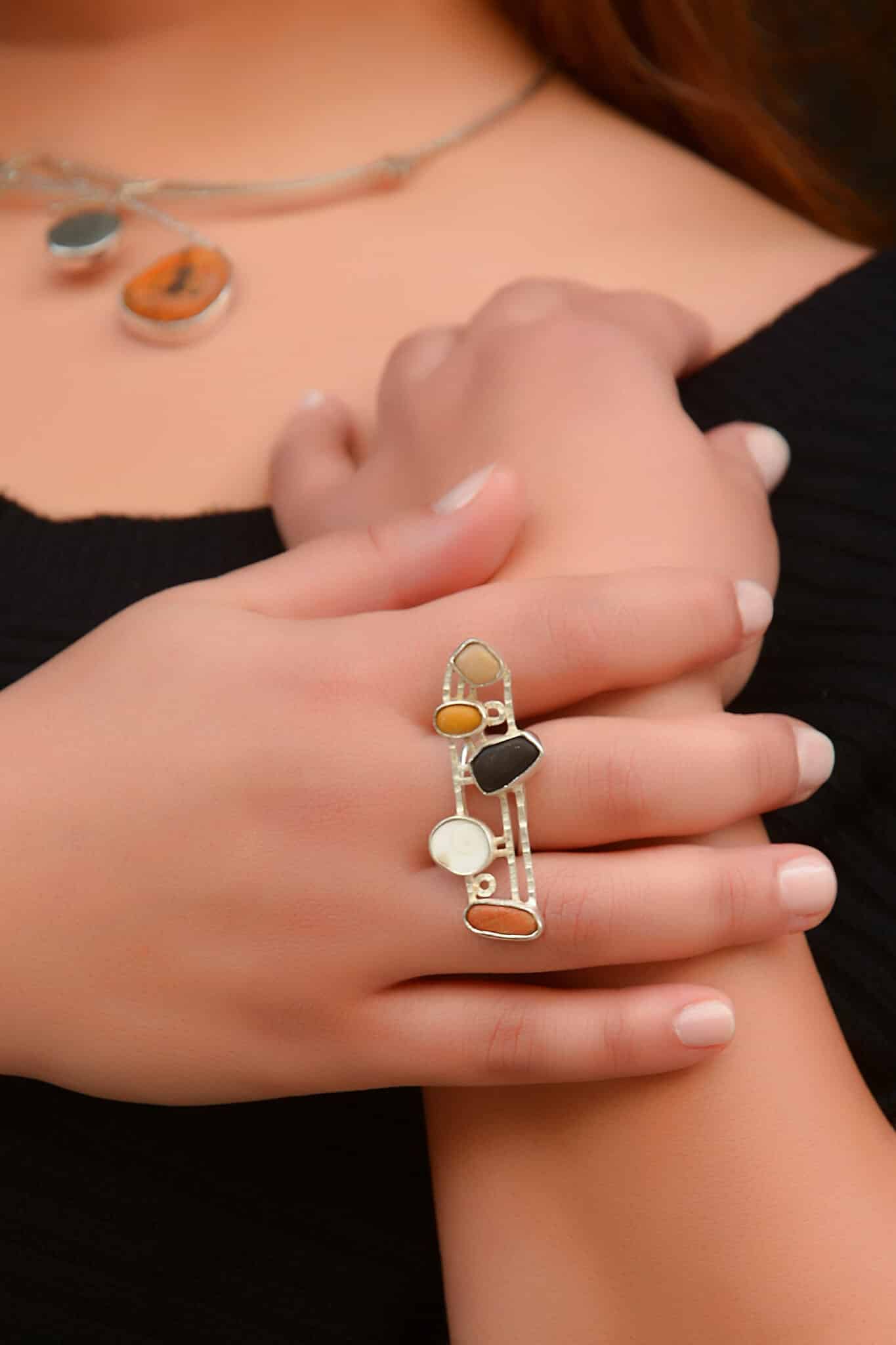 Handmade Sterling Silver Beach and Desert Stone, fossilized stone, Necklace/Natural Stone Necklace/Agate stone in raw shape