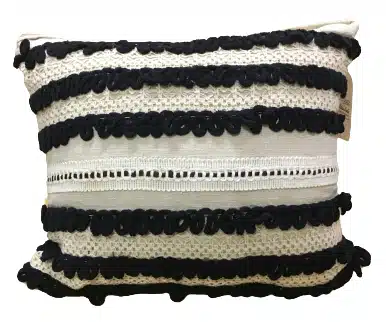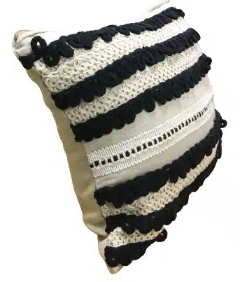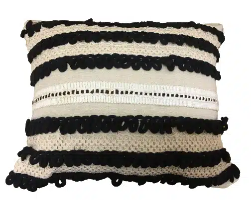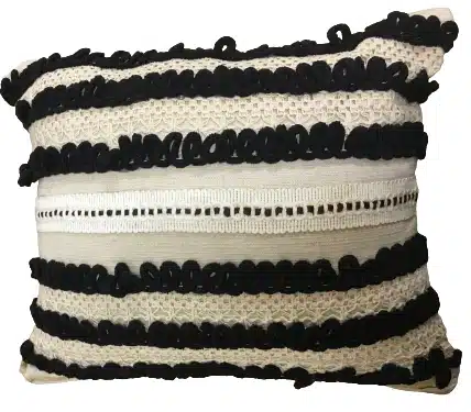 Add a touch of bohemian elegance to your space with this handcrafted cushion featuring intricate black and off-white textured details. Designed with high-quality fabric and unique looped embroidery, this cushion blends modern style with artisanal charm. Perfect for sofas, beds, or accent chairs.