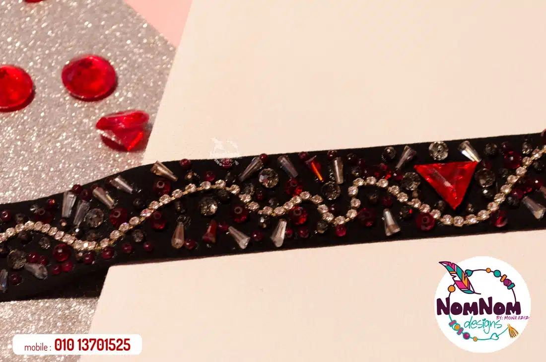 Handmade Trendy Crystal Choker handmade with Glass Beads on Black Fabric, Nickel Plated lock