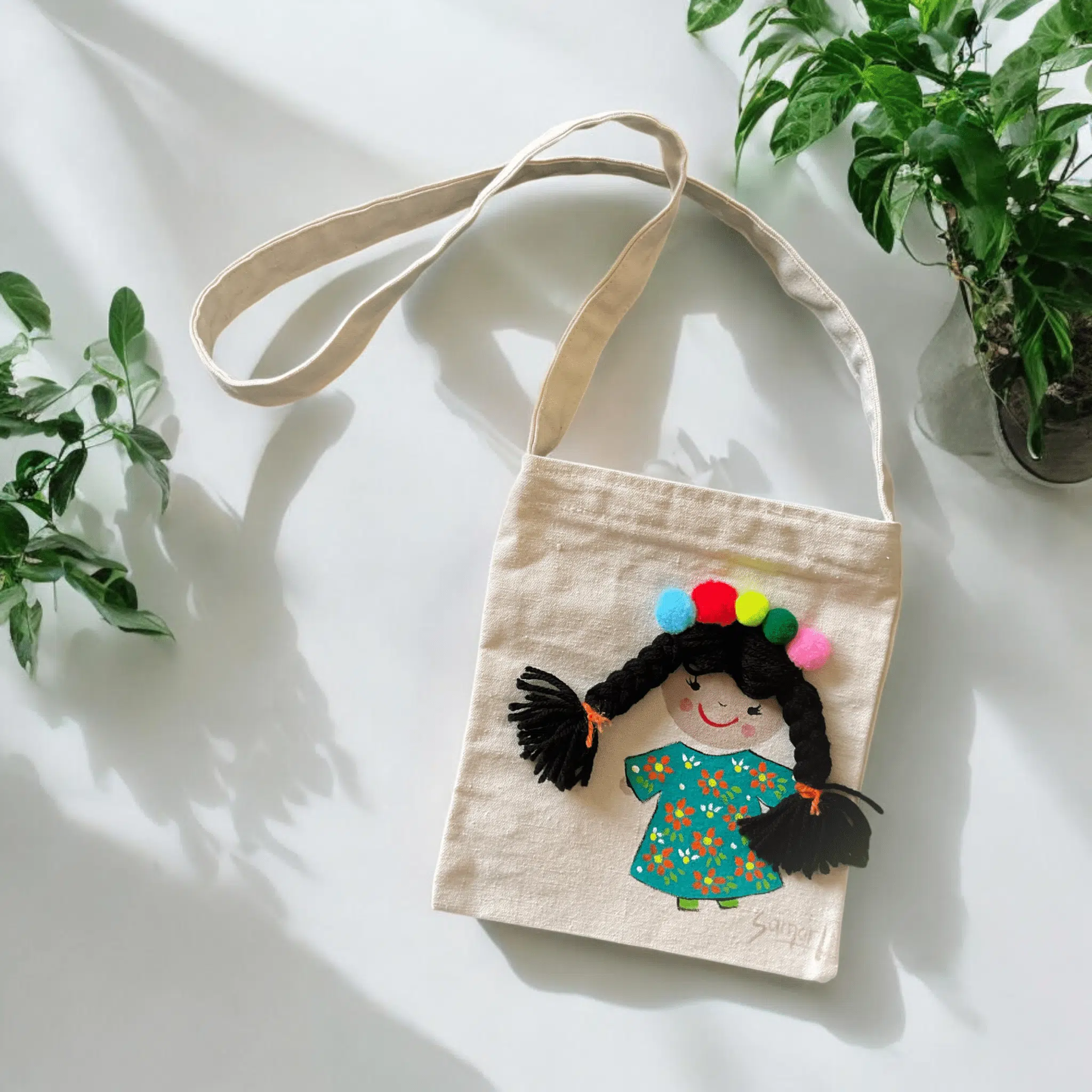 Handpainted cotton fabric bag