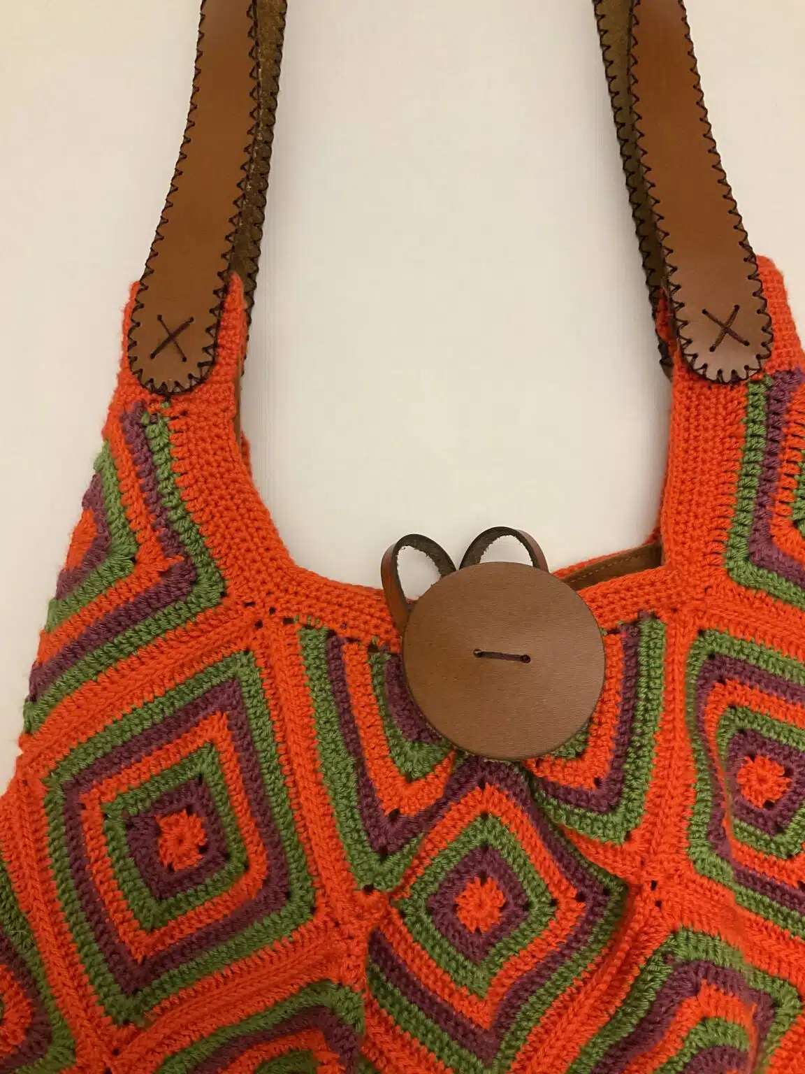 Handcrafted with love and tradition, this crochet tote features timeless granny square motifs with a beautiful blend of vibrant colors — all in perfect harmony.