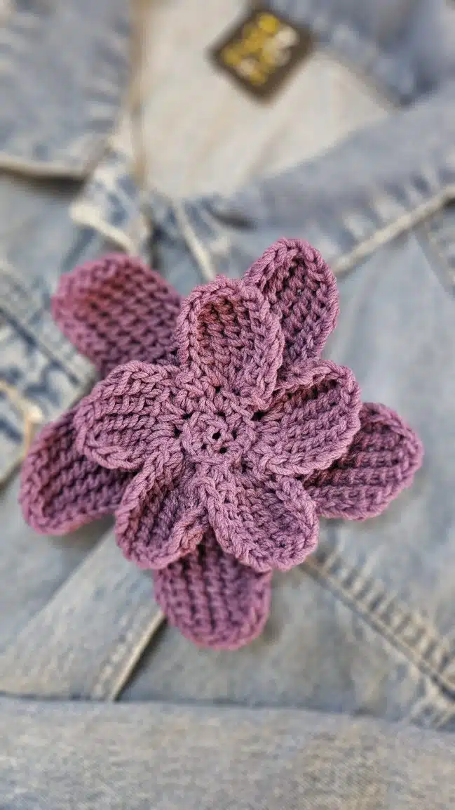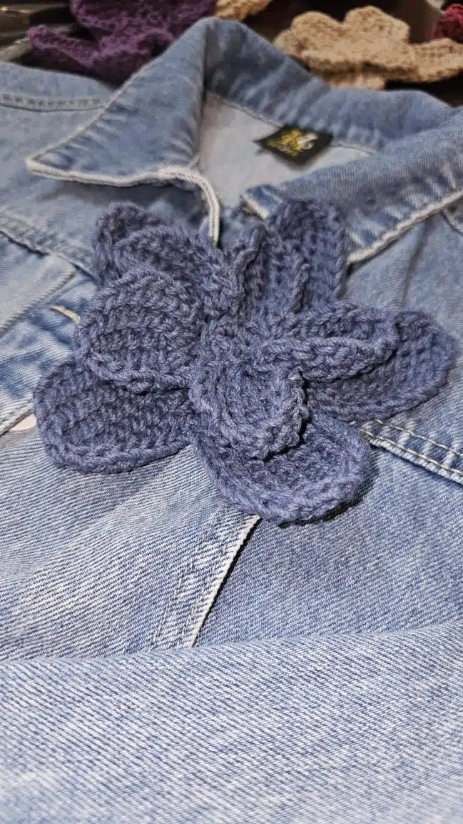 HAZEL Crochet Flowers are 3D-shaped and come in a variety of stunning colors: gold, beige, blue, purple, and dark red, adding a unique, textured touch to any outfit or accessory.