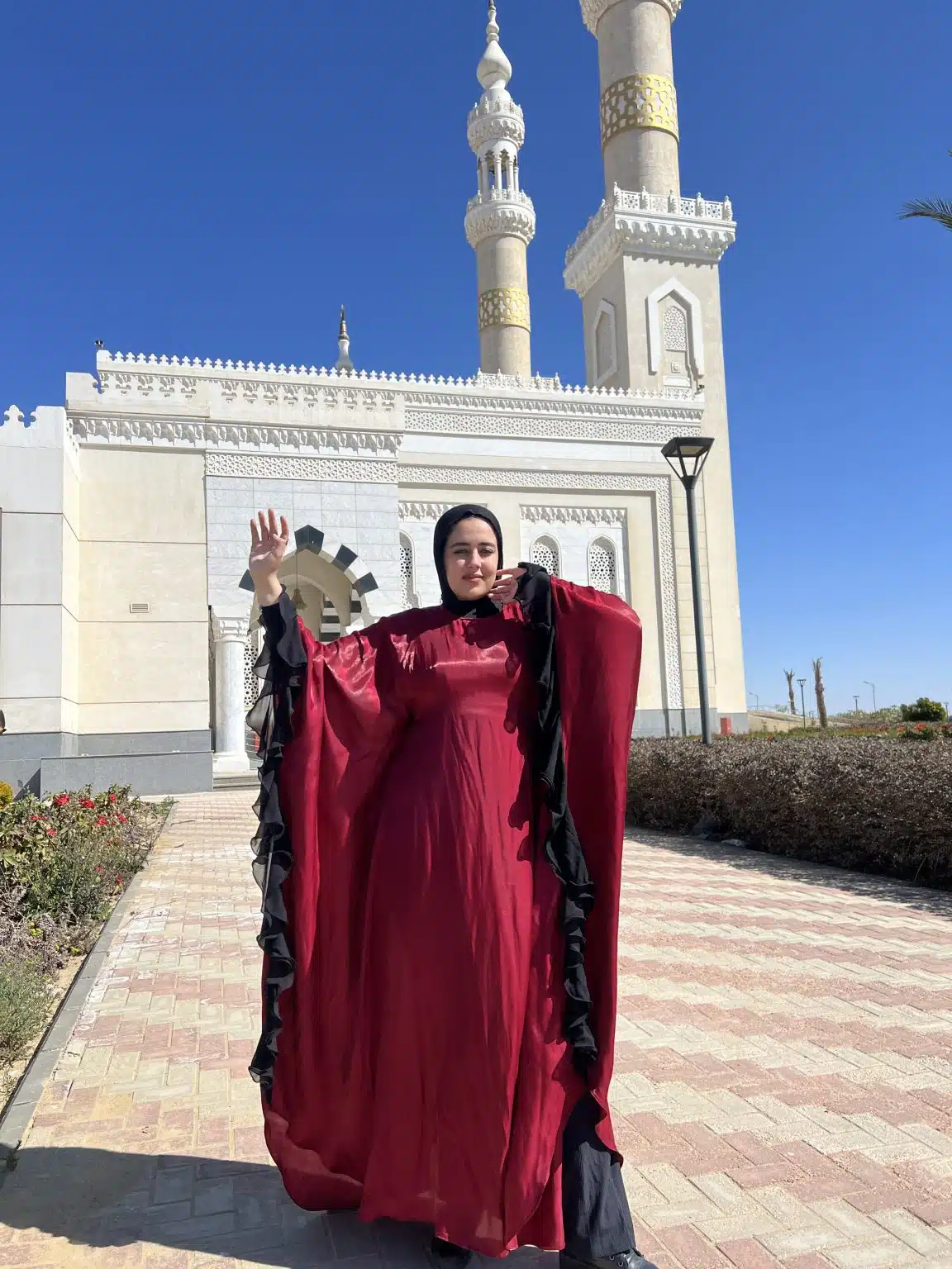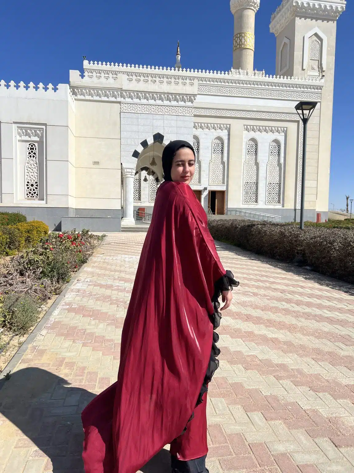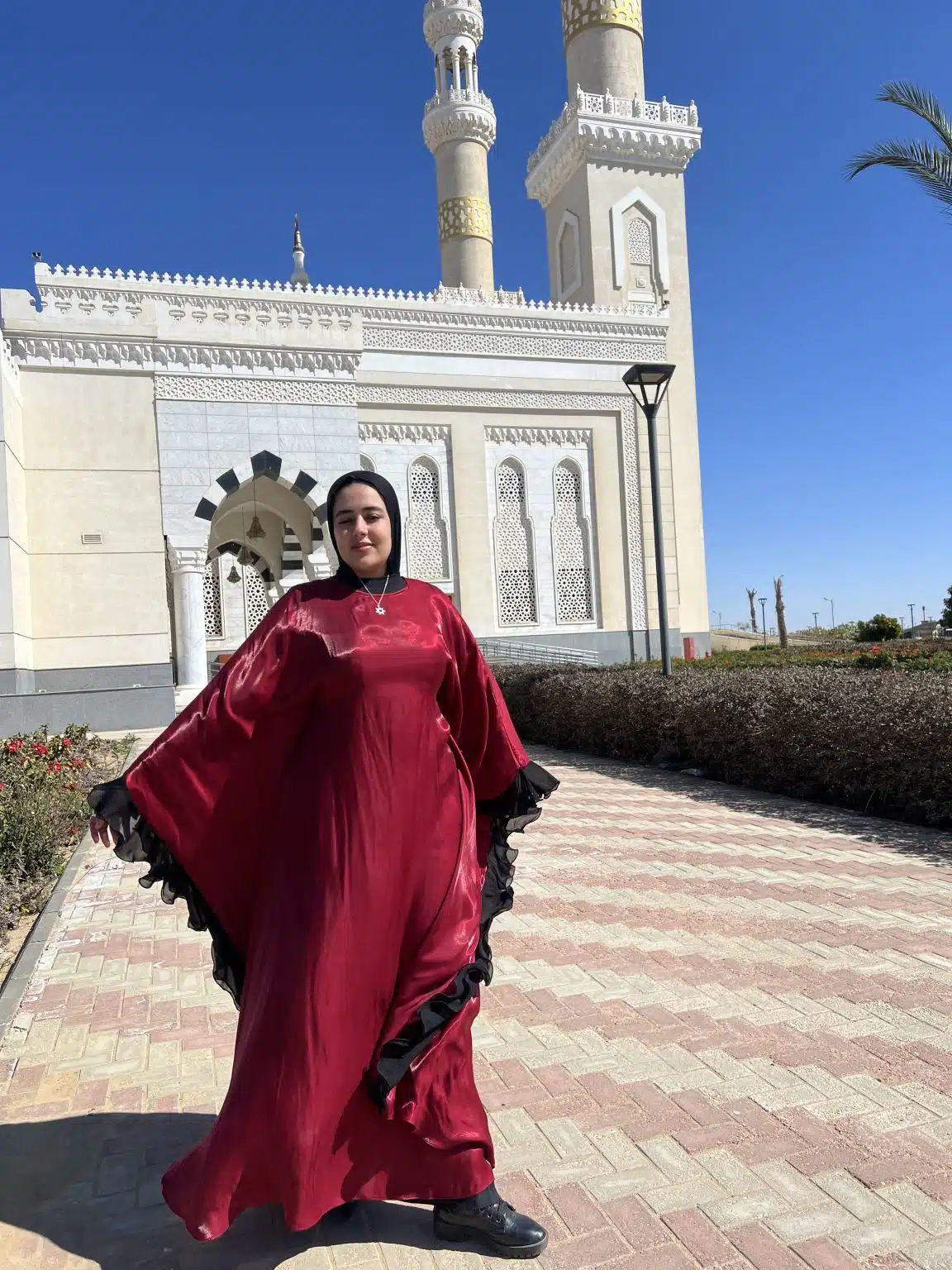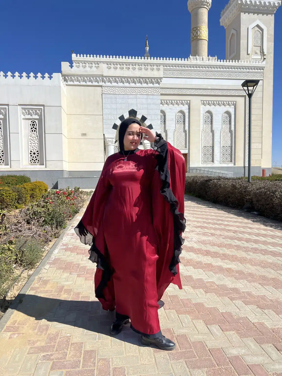 The Leila Burgundy Kaftan is an elegant blend of sophistication and modesty, designed for both special occasions and everyday grace. Featuring striking black swirls along the borders, this flowing kaftan adds a touch of artistry to your look. Perfect as a soirée dress, it offers effortless elegance while remaining modest and comfortable. Ideal for Ramadan gatherings, prayer, and refined outings, the Leila Kaftan embodies timeless beauty with a modern twist.