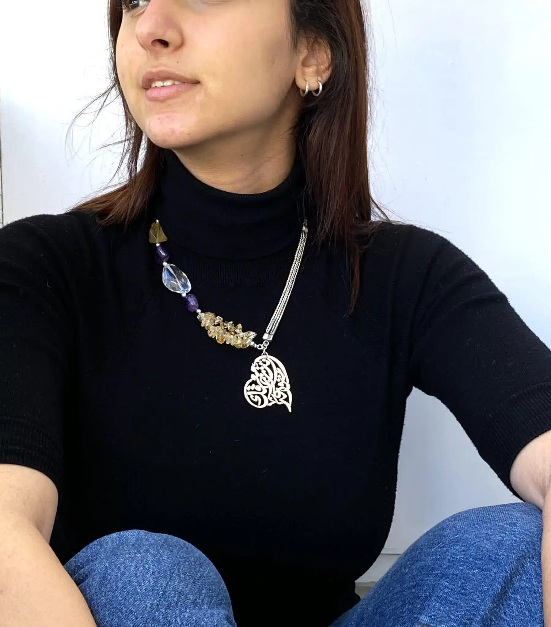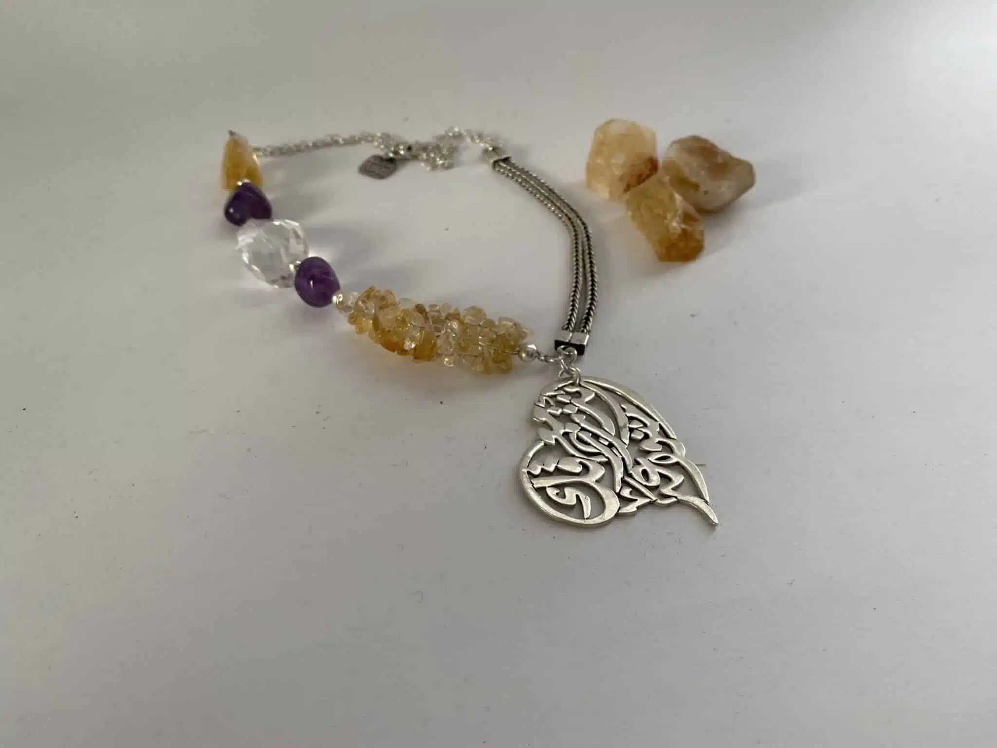 Sterling silver necklace with a quote in Arabic calligraphy saying