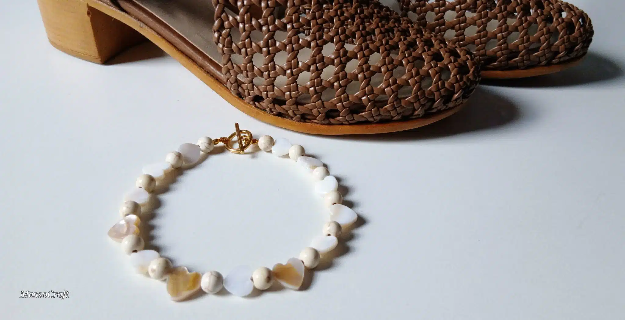 Anklet made of Seashell in shape of hearts with off-white fayrouz (turquoise) stones