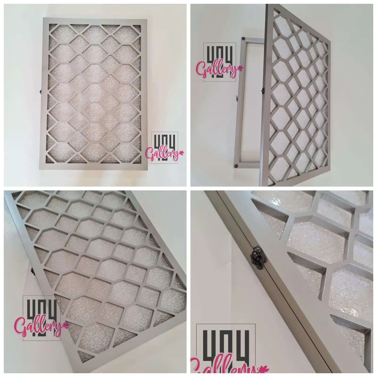التفريغات بتكون 1.5 سم والظهر بتاعه 2.5 سم دهان دوكو وواخد خدمه قبل الدهان زي العفش بتاع البيت تشطيب وش وظهر و اكريلك